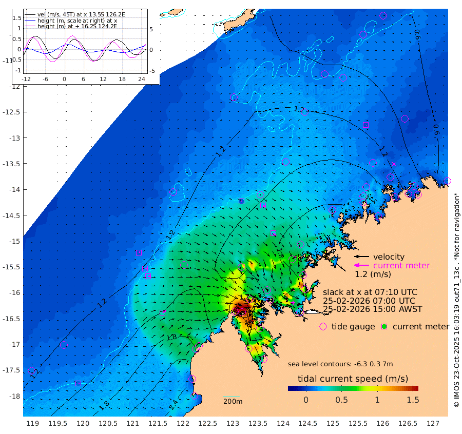 5cm/s 45T +10cm/s rms + 1cm/s 1T. NWSBRW 205m 9cm/s 85T +11cm/s rms + 6cm/s -110T. NWSROW 199m 29cm/s 130T +5cm/s rms + 2cm/s 65T. CAM050 58m 22cm/s 114T +12cm/s rms + 5cm/s 92T. CAM100 99m 6cm/s 78T +7cm/s rms + 1cm/s -85T. KIM400 396m 13cm/s 92T +9cm/s rms + 5cm/s -119T. KIM200 208m 22cm/s 92T +11cm/s rms + 5cm/s -147T. KIM100 99m 33cm/s 60T +8cm/s rms + 3cm/s -103T. KIM050 59m 1cm/s 30T +4cm/s rms + 2cm/s 23T. TIMORS88 91m 84cm Imperieuse Reef 126cm Mermaid Reef 250cm Broome 185cm Cape Baskerville 174cm Red Bluff 184cm Cape Boileau 114cm Scott Reef (WA) 121cm Ashmore Reef 149cm Karrakatta Bay 137cm Sunday Island -50cm Valentine Island -121cm Derby -9cm Port Usborne 198cm Bedford Islands 247cm Yampi Sound (Koolan Island) 223cm Macleay Island 178cm Adele Island 130cm Browse Island 263cm Shale Island 286cm Lizard Island 171cm Hall Point 234cm Degerando Island 240cm White Island 127cm Skua No. 4 Well 104cm Jabiru 206cm Maret Island 194cm Baudin Island 208cm Cape Voltaire (Krait Bay) 91cm Dillon Shoal 100cm Laminaria 225cm Port Warrender 157cm Troughton Island 186cm Cassini Island 151cm West Holothuria Reef Offshore 158cm Jar Island 164cm Lynher Bank 185cm Heywood Shoal 109cm Pee Shoal 104cm Van Cloon Shoal 133cm Carronade Island 140cm Guy Point 137cm Napier Broome Bay 94cm Lesueur Island