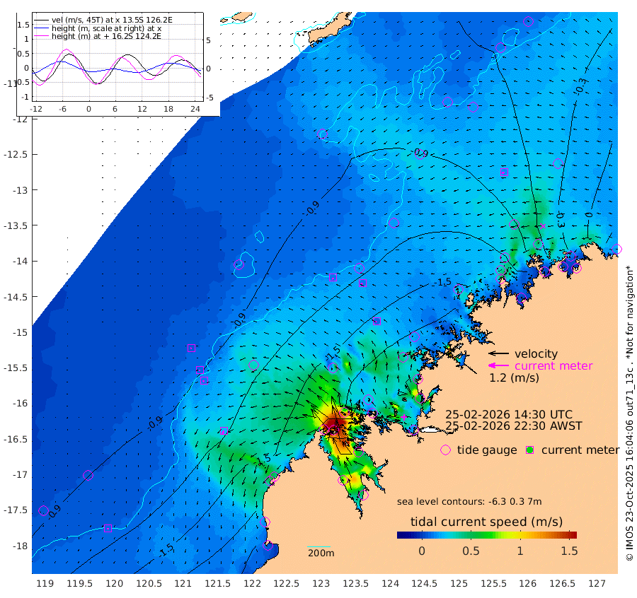 10cm/s 168T +10cm/s rms + 1cm/s 1T. NWSBRW 205m 7cm/s -168T +11cm/s rms + 6cm/s -110T. NWSROW 199m 10cm/s -110T +5cm/s rms + 2cm/s 65T. CAM050 58m 11cm/s -126T +12cm/s rms + 5cm/s 92T. CAM100 99m 5cm/s -121T +7cm/s rms + 1cm/s -85T. KIM400 396m 7cm/s -117T +9cm/s rms + 5cm/s -119T. KIM200 208m 11cm/s -129T +11cm/s rms + 5cm/s -147T. KIM100 99m 23cm/s -150T +8cm/s rms + 3cm/s -103T. KIM050 59m 15cm/s -101T +4cm/s rms + 2cm/s 23T. TIMORS88 91m -75cm Imperieuse Reef -87cm Mermaid Reef -184cm Broome -127cm Cape Baskerville -139cm Red Bluff -122cm Cape Boileau -78cm Scott Reef (WA) -83cm Ashmore Reef -165cm Karrakatta Bay -166cm Sunday Island -58cm Valentine Island -19cm Derby -95cm Port Usborne -192cm Bedford Islands -226cm Yampi Sound (Koolan Island) -221cm Macleay Island -148cm Adele Island -61cm Browse Island -269cm Shale Island -285cm Lizard Island -154cm Hall Point -186cm Degerando Island -182cm White Island -89cm Skua No. 4 Well -79cm Jabiru -140cm Maret Island -125cm Baudin Island -130cm Cape Voltaire (Krait Bay) -63cm Dillon Shoal -77cm Laminaria -130cm Port Warrender -73cm Troughton Island -109cm Cassini Island -82cm West Holothuria Reef Offshore -76cm Jar Island -122cm Lynher Bank -127cm Heywood Shoal -71cm Pee Shoal -41cm Van Cloon Shoal -38cm Carronade Island -44cm Guy Point -36cm Napier Broome Bay 23cm Lesueur Island