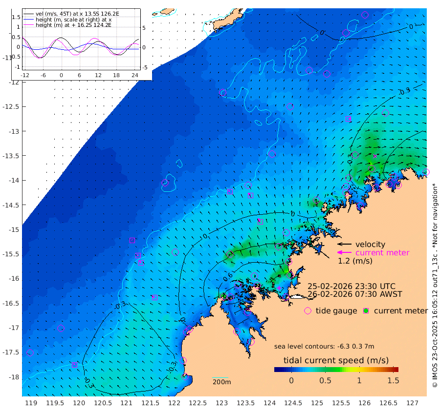 13cm/s -47T +10cm/s rms + 1cm/s 1T. NWSBRW 205m 14cm/s -42T +11cm/s rms + 6cm/s -110T. NWSROW 199m 33cm/s -30T +5cm/s rms + 2cm/s 65T. CAM050 58m 24cm/s -33T +12cm/s rms + 5cm/s 92T. CAM100 99m 3cm/s -46T +7cm/s rms + 1cm/s -85T. KIM400 396m 10cm/s -56T +9cm/s rms + 5cm/s -119T. KIM200 208m 19cm/s -51T +11cm/s rms + 5cm/s -147T. KIM100 99m 22cm/s -72T +8cm/s rms + 3cm/s -103T. KIM050 59m 19cm/s 75T +4cm/s rms + 2cm/s 23T. TIMORS88 91m 7cm Imperieuse Reef -33cm Mermaid Reef -58cm Broome -49cm Cape Baskerville -27cm Red Bluff -55cm Cape Boileau -26cm Scott Reef (WA) -23cm Ashmore Reef 45cm Karrakatta Bay 57cm Sunday Island 169cm Valentine Island 200cm Derby 157cm Port Usborne 20cm Bedford Islands 0cm Yampi Sound (Koolan Island) 41cm Macleay Island -7cm Adele Island -65cm Browse Island 35cm Shale Island 22cm Lizard Island 19cm Hall Point -32cm Degerando Island -51cm White Island -20cm Skua No. 4 Well 1cm Jabiru -51cm Maret Island -59cm Baudin Island -69cm Cape Voltaire (Krait Bay) -10cm Dillon Shoal -12cm Laminaria -87cm Port Warrender -65cm Troughton Island -61cm Cassini Island -57cm West Holothuria Reef Offshore -75cm Jar Island -34cm Lynher Bank -50cm Heywood Shoal -17cm Pee Shoal -51cm Van Cloon Shoal -92cm Carronade Island -92cm Guy Point -97cm Napier Broome Bay -116cm Lesueur Island