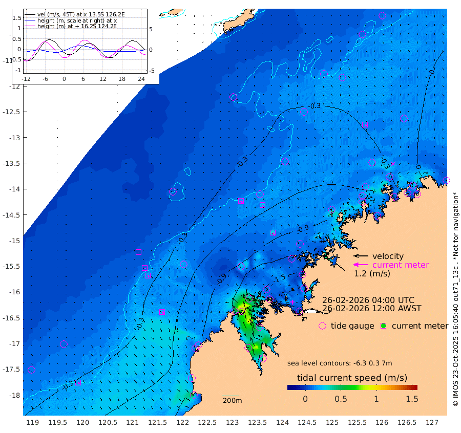 17cm/s 133T +10cm/s rms + 1cm/s 1T. NWSBRW 205m 16cm/s 150T +11cm/s rms + 6cm/s -110T. NWSROW 199m 27cm/s 140T +5cm/s rms + 2cm/s 65T. CAM050 58m 22cm/s 141T +12cm/s rms + 5cm/s 92T. CAM100 99m 3cm/s 151T +7cm/s rms + 1cm/s -85T. KIM400 396m 8cm/s 140T +9cm/s rms + 5cm/s -119T. KIM200 208m 18cm/s 147T +11cm/s rms + 5cm/s -147T. KIM100 99m 21cm/s 133T +8cm/s rms + 3cm/s -103T. KIM050 59m 13cm/s 126T +4cm/s rms + 2cm/s 23T. TIMORS88 91m -42cm Imperieuse Reef -2cm Mermaid Reef -46cm Broome -19cm Cape Baskerville -16cm Red Bluff -21cm Cape Boileau -5cm Scott Reef (WA) -12cm Ashmore Reef -101cm Karrakatta Bay -94cm Sunday Island -154cm Valentine Island -140cm Derby -154cm Port Usborne -90cm Bedford Islands -109cm Yampi Sound (Koolan Island) -136cm Macleay Island -54cm Adele Island -9cm Browse Island -156cm Shale Island -181cm Lizard Island -63cm Hall Point -68cm Degerando Island -61cm White Island -14cm Skua No. 4 Well -9cm Jabiru -36cm Maret Island -26cm Baudin Island -25cm Cape Voltaire (Krait Bay) 0cm Dillon Shoal 17cm Laminaria -28cm Port Warrender -14cm Troughton Island -15cm Cassini Island -3cm West Holothuria Reef Offshore -11cm Jar Island -27cm Lynher Bank -1cm Heywood Shoal -6cm Pee Shoal 10cm Van Cloon Shoal 18cm Carronade Island 21cm Guy Point 21cm Napier Broome Bay 43cm Lesueur Island