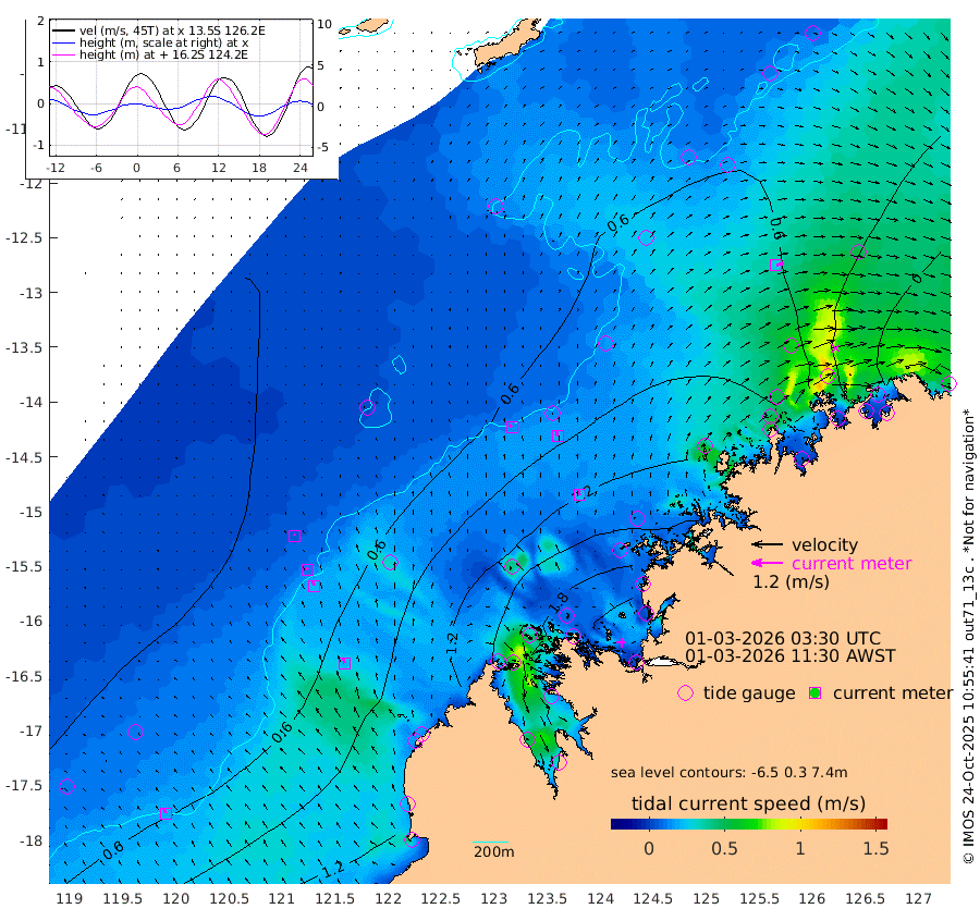 14cm/s -42T +10cm/s rms + 1cm/s 1T. NWSBRW 205m 20cm/s -28T +11cm/s rms + 6cm/s -110T. NWSROW 199m 24cm/s -12T +5cm/s rms + 2cm/s 65T. CAM050 58m 19cm/s -14T +12cm/s rms + 5cm/s 92T. CAM100 99m 5cm/s -16T +7cm/s rms + 1cm/s -85T. KIM400 396m 12cm/s -26T +9cm/s rms + 5cm/s -119T. KIM200 208m 21cm/s -21T +11cm/s rms + 5cm/s -147T. KIM100 99m 24cm/s -14T +8cm/s rms + 3cm/s -103T. KIM050 59m 29cm/s 68T +4cm/s rms + 2cm/s 23T. TIMORS88 91m 74cm Imperieuse Reef 39cm Mermaid Reef 130cm Broome 98cm Cape Baskerville 156cm Red Bluff 89cm Cape Boileau 39cm Scott Reef (WA) 61cm Ashmore Reef 184cm Karrakatta Bay 176cm Sunday Island 169cm Valentine Island 129cm Derby 164cm Port Usborne 200cm Bedford Islands 196cm Yampi Sound (Koolan Island) 220cm Macleay Island 139cm Adele Island 16cm Browse Island 248cm Shale Island 211cm Lizard Island 178cm Hall Point 165cm Degerando Island 119cm White Island 65cm Skua No. 4 Well 55cm Jabiru 108cm Maret Island 87cm Baudin Island 84cm Cape Voltaire (Krait Bay) 49cm Dillon Shoal 28cm Laminaria 91cm Port Warrender 48cm Troughton Island 91cm Cassini Island 51cm West Holothuria Reef Offshore 34cm Jar Island 71cm Lynher Bank 74cm Heywood Shoal 64cm Pee Shoal 24cm Van Cloon Shoal -9cm Carronade Island -14cm Guy Point -9cm Napier Broome Bay -72cm Lesueur Island