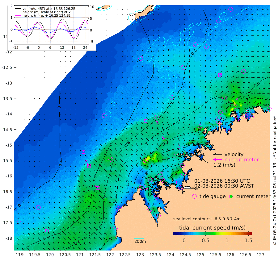 28cm/s -52T +10cm/s rms + 1cm/s 1T. NWSBRW 205m 33cm/s -37T +11cm/s rms + 6cm/s -110T. NWSROW 199m 58cm/s -32T +5cm/s rms + 2cm/s 65T. CAM050 58m 46cm/s -32T +12cm/s rms + 5cm/s 92T. CAM100 99m 11cm/s -47T +7cm/s rms + 1cm/s -85T. KIM400 396m 23cm/s -45T +9cm/s rms + 5cm/s -119T. KIM200 208m 42cm/s -38T +11cm/s rms + 5cm/s -147T. KIM100 99m 45cm/s -45T +8cm/s rms + 3cm/s -103T. KIM050 59m 22cm/s 31T +4cm/s rms + 2cm/s 23T. TIMORS88 91m 102cm Imperieuse Reef 7cm Mermaid Reef 84cm Broome 58cm Cape Baskerville 118cm Red Bluff 71cm Cape Boileau 11cm Scott Reef (WA) 47cm Ashmore Reef 201cm Karrakatta Bay 196cm Sunday Island 276cm Valentine Island 265cm Derby 260cm Port Usborne 182cm Bedford Islands 196cm Yampi Sound (Koolan Island) 195cm Macleay Island 106cm Adele Island -22cm Browse Island 270cm Shale Island 234cm Lizard Island 106cm Hall Point 152cm Degerando Island 101cm White Island 45cm Skua No. 4 Well 20cm Jabiru 80cm Maret Island 65cm Baudin Island 76cm Cape Voltaire (Krait Bay) 60cm Dillon Shoal -15cm Laminaria 103cm Port Warrender 68cm Troughton Island 77cm Cassini Island 45cm West Holothuria Reef Offshore 60cm Jar Island 44cm Lynher Bank 54cm Heywood Shoal 53cm Pee Shoal 45cm Van Cloon Shoal 25cm Carronade Island 20cm Guy Point 28cm Napier Broome Bay -8cm Lesueur Island
