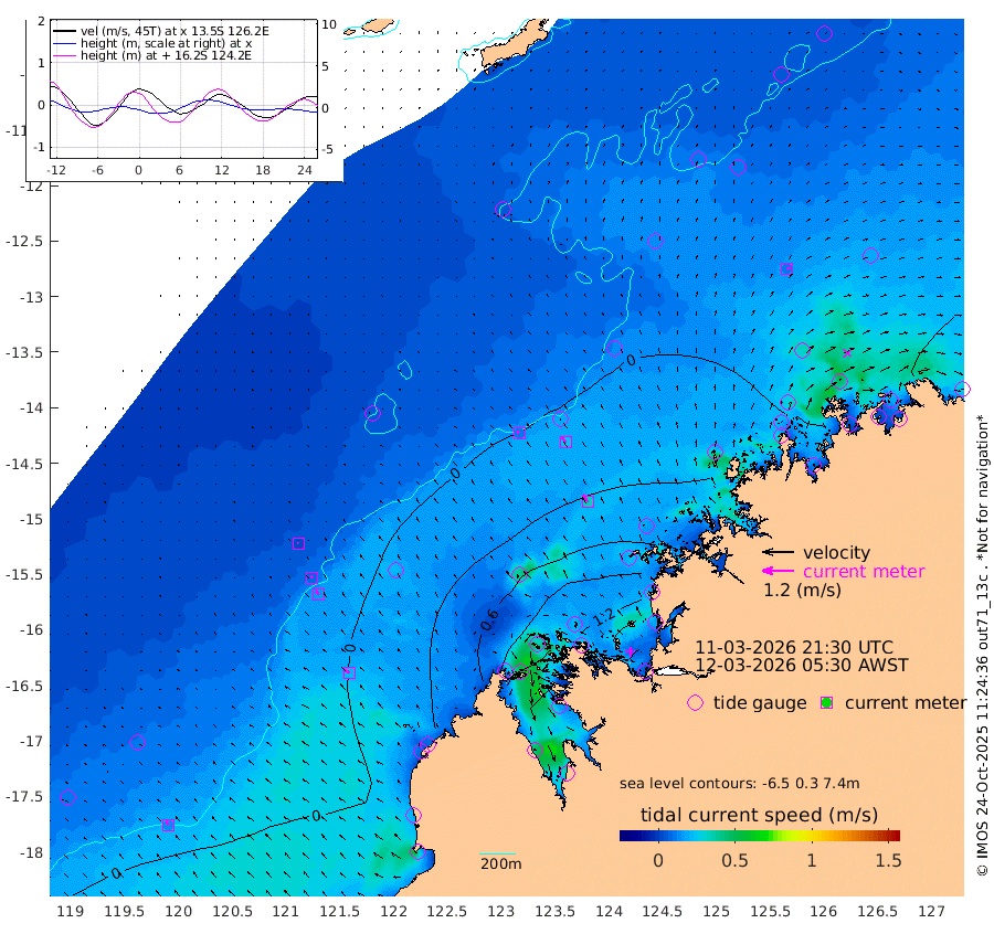 11cm/s -50T +10cm/s rms + 1cm/s 1T. NWSBRW 205m 15cm/s -41T +11cm/s rms + 6cm/s -110T. NWSROW 199m 33cm/s -34T +5cm/s rms + 2cm/s 65T. CAM050 58m 24cm/s -34T +12cm/s rms + 5cm/s 92T. CAM100 99m 3cm/s -41T +7cm/s rms + 1cm/s -85T. KIM400 396m 9cm/s -51T +9cm/s rms + 5cm/s -119T. KIM200 208m 18cm/s -48T +11cm/s rms + 5cm/s -147T. KIM100 99m 22cm/s -63T +8cm/s rms + 3cm/s -103T. KIM050 59m 10cm/s 61T +4cm/s rms + 2cm/s 23T. TIMORS88 91m 11cm Imperieuse Reef -24cm Mermaid Reef -25cm Broome -34cm Cape Baskerville 0cm Red Bluff -40cm Cape Boileau -25cm Scott Reef (WA) -21cm Ashmore Reef 54cm Karrakatta Bay 63cm Sunday Island 155cm Valentine Island 162cm Derby 140cm Port Usborne 26cm Bedford Islands 45cm Yampi Sound (Koolan Island) 55cm Macleay Island 3cm Adele Island -53cm Browse Island 89cm Shale Island 105cm Lizard Island 90cm Hall Point -2cm Degerando Island 2cm White Island -27cm Skua No. 4 Well -13cm Jabiru -31cm Maret Island -35cm Baudin Island -41cm Cape Voltaire (Krait Bay) -19cm Dillon Shoal -20cm Laminaria -41cm Port Warrender -53cm Troughton Island -51cm Cassini Island -41cm West Holothuria Reef Offshore -46cm Jar Island -16cm Lynher Bank -36cm Heywood Shoal -28cm Pee Shoal -47cm Van Cloon Shoal -68cm Carronade Island -69cm Guy Point -77cm Napier Broome Bay -99cm Lesueur Island