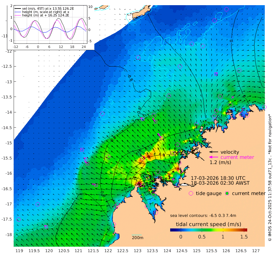 32cm/s -55T +10cm/s rms + 1cm/s 1T. NWSBRW 205m 34cm/s -48T +11cm/s rms + 6cm/s -110T. NWSROW 199m 84cm/s -38T +5cm/s rms + 2cm/s 65T. CAM050 58m 62cm/s -40T +12cm/s rms + 5cm/s 92T. CAM100 99m 14cm/s -66T +7cm/s rms + 1cm/s -85T. KIM400 396m 28cm/s -60T +9cm/s rms + 5cm/s -119T. KIM200 208m 50cm/s -54T +11cm/s rms + 5cm/s -147T. KIM100 99m 60cm/s -74T +8cm/s rms + 3cm/s -103T. KIM050 59m 15cm/s 26T +4cm/s rms + 2cm/s 23T. TIMORS88 91m 25cm Imperieuse Reef -89cm Mermaid Reef -141cm Broome -107cm Cape Baskerville -53cm Red Bluff -103cm Cape Boileau -87cm Scott Reef (WA) -67cm Ashmore Reef 39cm Karrakatta Bay 68cm Sunday Island 296cm Valentine Island 336cm Derby 234cm Port Usborne -6cm Bedford Islands -18cm Yampi Sound (Koolan Island) -72cm Macleay Island -85cm Adele Island -153cm Browse Island 32cm Shale Island 10cm Lizard Island -76cm Hall Point -64cm Degerando Island -86cm White Island -87cm Skua No. 4 Well -73cm Jabiru -116cm Maret Island -95cm Baudin Island -103cm Cape Voltaire (Krait Bay) -33cm Dillon Shoal -86cm Laminaria -70cm Port Warrender -61cm Troughton Island -107cm Cassini Island -82cm West Holothuria Reef Offshore -50cm Jar Island -82cm Lynher Bank -105cm Heywood Shoal -63cm Pee Shoal -34cm Van Cloon Shoal -55cm Carronade Island -57cm Guy Point -63cm Napier Broome Bay -11cm Lesueur Island