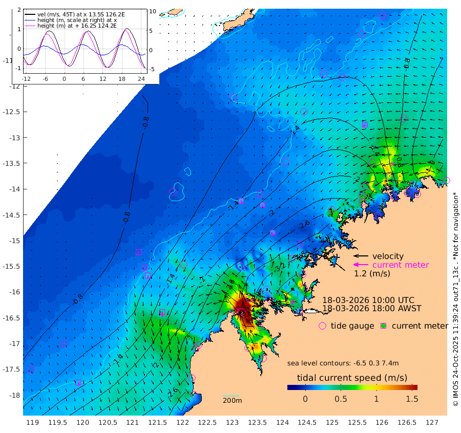 23cm/s 146T +10cm/s rms + 1cm/s 1T. NWSBRW 205m 21cm/s 159T +11cm/s rms + 6cm/s -110T. NWSROW 199m 20cm/s 171T +5cm/s rms + 2cm/s 65T. CAM050 58m 20cm/s 176T +12cm/s rms + 5cm/s 92T. CAM100 99m 6cm/s 180T +7cm/s rms + 1cm/s -85T. KIM400 396m 12cm/s 179T +9cm/s rms + 5cm/s -119T. KIM200 208m 25cm/s 180T +11cm/s rms + 5cm/s -147T. KIM100 99m 37cm/s 178T +8cm/s rms + 3cm/s -103T. KIM050 59m 21cm/s -129T +4cm/s rms + 2cm/s 23T. TIMORS88 91m -125cm Imperieuse Reef -92cm Mermaid Reef -280cm Broome -208cm Cape Baskerville -279cm Red Bluff -195cm Cape Boileau -83cm Scott Reef (WA) -120cm Ashmore Reef -314cm Karrakatta Bay -280cm Sunday Island -208cm Valentine Island -112cm Derby -205cm Port Usborne -327cm Bedford Islands -375cm Yampi Sound (Koolan Island) -406cm Macleay Island -256cm Adele Island -86cm Browse Island -458cm Shale Island -392cm Lizard Island -350cm Hall Point -315cm Degerando Island -279cm White Island -121cm Skua No. 4 Well -79cm Jabiru -230cm Maret Island -214cm Baudin Island -199cm Cape Voltaire (Krait Bay) -96cm Dillon Shoal -44cm Laminaria -230cm Port Warrender -132cm Troughton Island -196cm Cassini Island -133cm West Holothuria Reef Offshore -123cm Jar Island -147cm Lynher Bank -164cm Heywood Shoal -106cm Pee Shoal -64cm Van Cloon Shoal -49cm Carronade Island -47cm Guy Point -41cm Napier Broome Bay 56cm Lesueur Island