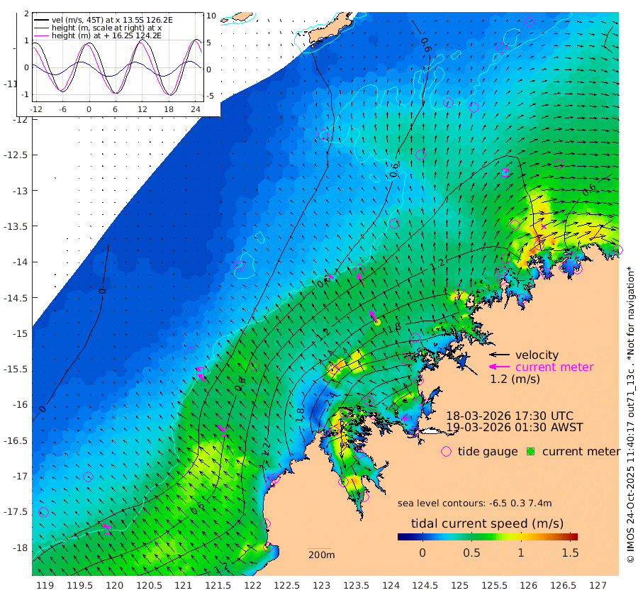 33cm/s -51T +10cm/s rms + 1cm/s 1T. NWSBRW 205m 44cm/s -37T +11cm/s rms + 6cm/s -110T. NWSROW 199m 80cm/s -32T +5cm/s rms + 2cm/s 65T. CAM050 58m 61cm/s -30T +12cm/s rms + 5cm/s 92T. CAM100 99m 14cm/s -45T +7cm/s rms + 1cm/s -85T. KIM400 396m 29cm/s -45T +9cm/s rms + 5cm/s -119T. KIM200 208m 53cm/s -39T +11cm/s rms + 5cm/s -147T. KIM100 99m 60cm/s -45T +8cm/s rms + 3cm/s -103T. KIM050 59m 29cm/s 41T +4cm/s rms + 2cm/s 23T. TIMORS88 91m 122cm Imperieuse Reef 8cm Mermaid Reef 98cm Broome 68cm Cape Baskerville 170cm Red Bluff 74cm Cape Boileau 5cm Scott Reef (WA) 48cm Ashmore Reef 266cm Karrakatta Bay 268cm Sunday Island 394cm Valentine Island 362cm Derby 347cm Port Usborne 232cm Bedford Islands 265cm Yampi Sound (Koolan Island) 246cm Macleay Island 129cm Adele Island -54cm Browse Island 367cm Shale Island 333cm Lizard Island 210cm Hall Point 184cm Degerando Island 142cm White Island 37cm Skua No. 4 Well 23cm Jabiru 84cm Maret Island 80cm Baudin Island 76cm Cape Voltaire (Krait Bay) 61cm Dillon Shoal -15cm Laminaria 121cm Port Warrender 59cm Troughton Island 68cm Cassini Island 45cm West Holothuria Reef Offshore 61cm Jar Island 53cm Lynher Bank 56cm Heywood Shoal 47cm Pee Shoal 37cm Van Cloon Shoal 8cm Carronade Island 5cm Guy Point 5cm Napier Broome Bay -40cm Lesueur Island