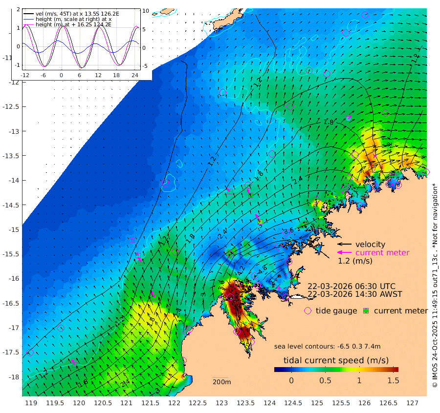40cm/s -43T +10cm/s rms + 1cm/s 1T. NWSBRW 205m 48cm/s -30T +11cm/s rms + 6cm/s -110T. NWSROW 199m 75cm/s -30T +5cm/s rms + 2cm/s 65T. CAM050 58m 60cm/s -26T +12cm/s rms + 5cm/s 92T. CAM100 99m 13cm/s -30T +7cm/s rms + 1cm/s -85T. KIM400 396m 27cm/s -33T +9cm/s rms + 5cm/s -119T. KIM200 208m 54cm/s -28T +11cm/s rms + 5cm/s -147T. KIM100 99m 65cm/s -32T +8cm/s rms + 3cm/s -103T. KIM050 59m 35cm/s 38T +4cm/s rms + 2cm/s 23T. TIMORS88 91m 191cm Imperieuse Reef 80cm Mermaid Reef 257cm Broome 178cm Cape Baskerville 259cm Red Bluff 175cm Cape Boileau 73cm Scott Reef (WA) 131cm Ashmore Reef 398cm Karrakatta Bay 382cm Sunday Island 437cm Valentine Island 373cm Derby 425cm Port Usborne 384cm Bedford Islands 445cm Yampi Sound (Koolan Island) 443cm Macleay Island 260cm Adele Island 33cm Browse Island 578cm Shale Island 560cm Lizard Island 382cm Hall Point 343cm Degerando Island 292cm White Island 126cm Skua No. 4 Well 132cm Jabiru 221cm Maret Island 204cm Baudin Island 202cm Cape Voltaire (Krait Bay) 116cm Dillon Shoal 43cm Laminaria 243cm Port Warrender 165cm Troughton Island 191cm Cassini Island 134cm West Holothuria Reef Offshore 157cm Jar Island 157cm Lynher Bank 149cm Heywood Shoal 124cm Pee Shoal 98cm Van Cloon Shoal 74cm Carronade Island 66cm Guy Point 74cm Napier Broome Bay 6cm Lesueur Island