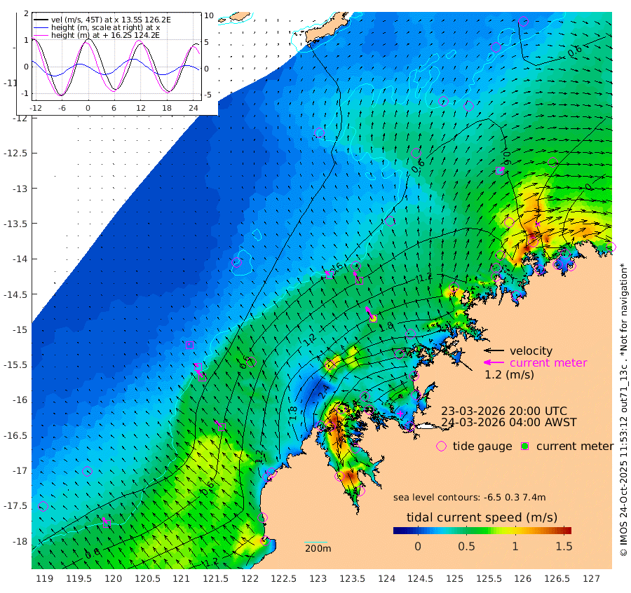 35cm/s -47T +10cm/s rms + 1cm/s 1T. NWSBRW 205m 44cm/s -36T +11cm/s rms + 6cm/s -110T. NWSROW 199m 83cm/s -31T +5cm/s rms + 2cm/s 65T. CAM050 58m 63cm/s -30T +12cm/s rms + 5cm/s 92T. CAM100 99m 11cm/s -39T +7cm/s rms + 1cm/s -85T. KIM400 396m 28cm/s -45T +9cm/s rms + 5cm/s -119T. KIM200 208m 52cm/s -41T +11cm/s rms + 5cm/s -147T. KIM100 99m 59cm/s -48T +8cm/s rms + 3cm/s -103T. KIM050 59m 34cm/s 53T +4cm/s rms + 2cm/s 23T. TIMORS88 91m 109cm Imperieuse Reef -1cm Mermaid Reef 69cm Broome 29cm Cape Baskerville 114cm Red Bluff 30cm Cape Boileau -2cm Scott Reef (WA) 32cm Ashmore Reef 253cm Karrakatta Bay 264cm Sunday Island 383cm Valentine Island 390cm Derby 377cm Port Usborne 216cm Bedford Islands 241cm Yampi Sound (Koolan Island) 236cm Macleay Island 107cm Adele Island -75cm Browse Island 356cm Shale Island 344cm Lizard Island 185cm Hall Point 147cm Degerando Island 105cm White Island 24cm Skua No. 4 Well 27cm Jabiru 48cm Maret Island 36cm Baudin Island 30cm Cape Voltaire (Krait Bay) 37cm Dillon Shoal -5cm Laminaria 39cm Port Warrender 0cm Troughton Island 18cm Cassini Island -2cm West Holothuria Reef Offshore 4cm Jar Island 43cm Lynher Bank 24cm Heywood Shoal 24cm Pee Shoal -10cm Van Cloon Shoal -57cm Carronade Island -61cm Guy Point -61cm Napier Broome Bay -118cm Lesueur Island