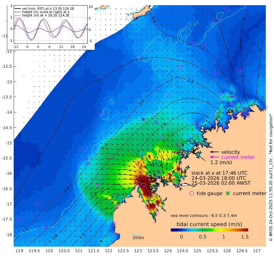 7cm/s -16T +10cm/s rms + 1cm/s 1T. NWSBRW 205m 9cm/s 50T +11cm/s rms + 6cm/s -110T. NWSROW 199m 26cm/s 141T +5cm/s rms + 2cm/s 65T. CAM050 58m 16cm/s 122T +12cm/s rms + 5cm/s 92T. CAM100 99m 7cm/s 77T +7cm/s rms + 1cm/s -85T. KIM400 396m 12cm/s 82T +9cm/s rms + 5cm/s -119T. KIM200 208m 18cm/s 82T +11cm/s rms + 5cm/s -147T. KIM100 99m 35cm/s 51T +8cm/s rms + 3cm/s -103T. KIM050 59m 5cm/s -108T +4cm/s rms + 2cm/s 23T. TIMORS88 91m 59cm Imperieuse Reef 100cm Mermaid Reef 290cm Broome 196cm Cape Baskerville 227cm Red Bluff 191cm Cape Boileau 84cm Scott Reef (WA) 85cm Ashmore Reef 194cm Karrakatta Bay 162cm Sunday Island -87cm Valentine Island -183cm Derby -23cm Port Usborne 251cm Bedford Islands 301cm Yampi Sound (Koolan Island) 296cm Macleay Island 200cm Adele Island 126cm Browse Island 343cm Shale Island 344cm Lizard Island 228cm Hall Point 271cm Degerando Island 264cm White Island 88cm Skua No. 4 Well 25cm Jabiru 209cm Maret Island 188cm Baudin Island 184cm Cape Voltaire (Krait Bay) 25cm Dillon Shoal 35cm Laminaria 192cm Port Warrender 68cm Troughton Island 154cm Cassini Island 94cm West Holothuria Reef Offshore 85cm Jar Island 151cm Lynher Bank 154cm Heywood Shoal 49cm Pee Shoal 12cm Van Cloon Shoal 24cm Carronade Island 22cm Guy Point 21cm Napier Broome Bay -93cm Lesueur Island