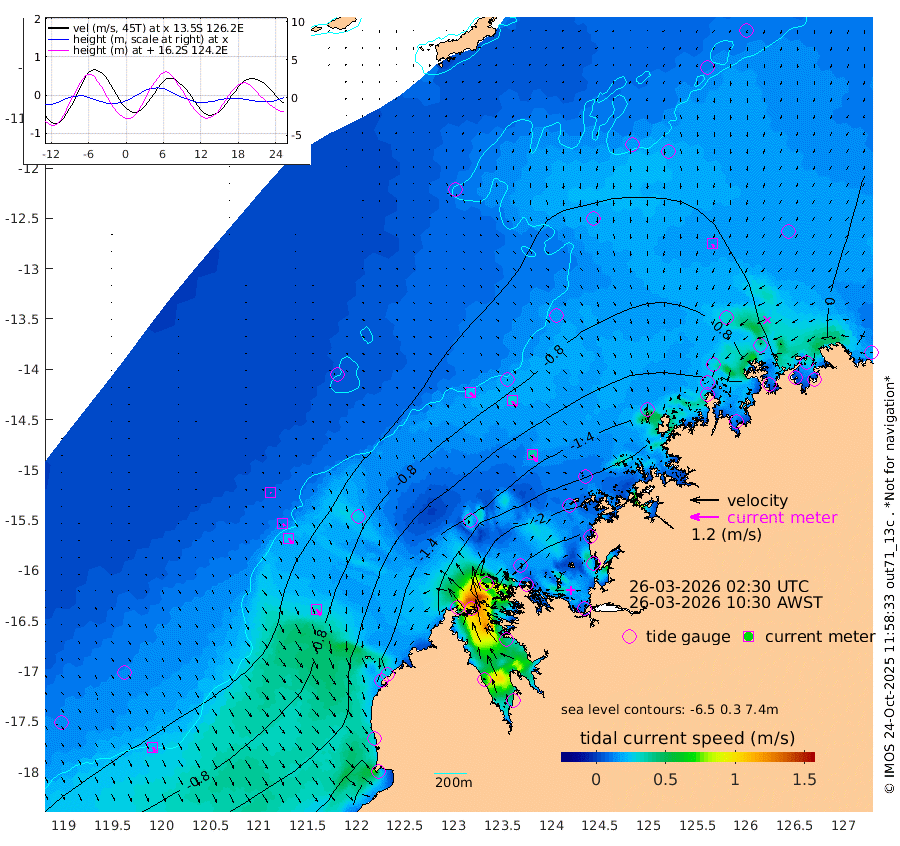 26cm/s 135T +10cm/s rms + 1cm/s 1T. NWSBRW 205m 21cm/s 150T +11cm/s rms + 6cm/s -110T. NWSROW 199m 35cm/s 144T +5cm/s rms + 2cm/s 65T. CAM050 58m 30cm/s 146T +12cm/s rms + 5cm/s 92T. CAM100 99m 5cm/s 152T +7cm/s rms + 1cm/s -85T. KIM400 396m 11cm/s 147T +9cm/s rms + 5cm/s -119T. KIM200 208m 25cm/s 152T +11cm/s rms + 5cm/s -147T. KIM100 99m 30cm/s 141T +8cm/s rms + 3cm/s -103T. KIM050 59m 15cm/s 156T +4cm/s rms + 2cm/s 23T. TIMORS88 91m -69cm Imperieuse Reef -17cm Mermaid Reef -98cm Broome -53cm Cape Baskerville -68cm Red Bluff -54cm Cape Boileau -16cm Scott Reef (WA) -28cm Ashmore Reef -162cm Karrakatta Bay -153cm Sunday Island -195cm Valentine Island -166cm Derby -200cm Port Usborne -156cm Bedford Islands -187cm Yampi Sound (Koolan Island) -199cm Macleay Island -93cm Adele Island -12cm Browse Island -258cm Shale Island -277cm Lizard Island -151cm Hall Point -132cm Degerando Island -118cm White Island -29cm Skua No. 4 Well -26cm Jabiru -73cm Maret Island -62cm Baudin Island -61cm Cape Voltaire (Krait Bay) -12cm Dillon Shoal 13cm Laminaria -73cm Port Warrender -33cm Troughton Island -43cm Cassini Island -21cm West Holothuria Reef Offshore -34cm Jar Island -56cm Lynher Bank -30cm Heywood Shoal -17cm Pee Shoal 2cm Van Cloon Shoal 9cm Carronade Island 12cm Guy Point 13cm Napier Broome Bay 50cm Lesueur Island