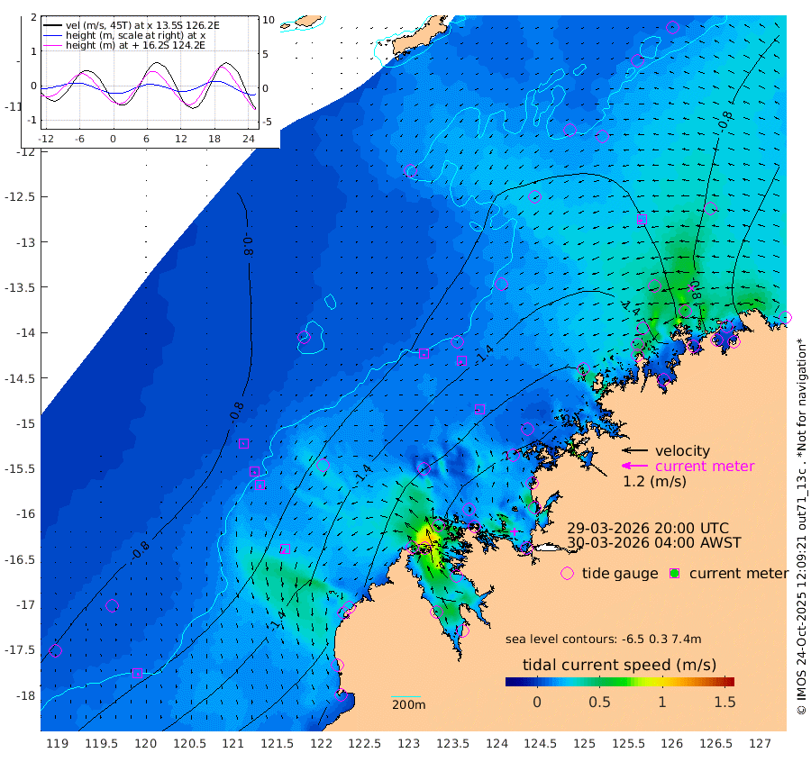 9cm/s 160T +10cm/s rms + 1cm/s 1T. NWSBRW 205m 12cm/s 170T +11cm/s rms + 6cm/s -110T. NWSROW 199m 11cm/s -123T +5cm/s rms + 2cm/s 65T. CAM050 58m 11cm/s -140T +12cm/s rms + 5cm/s 92T. CAM100 99m 4cm/s -147T +7cm/s rms + 1cm/s -85T. KIM400 396m 7cm/s -163T +9cm/s rms + 5cm/s -119T. KIM200 208m 15cm/s -167T +11cm/s rms + 5cm/s -147T. KIM100 99m 24cm/s -153T +8cm/s rms + 3cm/s -103T. KIM050 59m 19cm/s -120T +4cm/s rms + 2cm/s 23T. TIMORS88 91m -96cm Imperieuse Reef -87cm Mermaid Reef -198cm Broome -155cm Cape Baskerville -185cm Red Bluff -162cm Cape Boileau -90cm Scott Reef (WA) -108cm Ashmore Reef -205cm Karrakatta Bay -200cm Sunday Island -132cm Valentine Island -80cm Derby -137cm Port Usborne -230cm Bedford Islands -239cm Yampi Sound (Koolan Island) -287cm Macleay Island -195cm Adele Island -84cm Browse Island -273cm Shale Island -264cm Lizard Island -191cm Hall Point -218cm Degerando Island -183cm White Island -121cm Skua No. 4 Well -106cm Jabiru -174cm Maret Island -148cm Baudin Island -155cm Cape Voltaire (Krait Bay) -99cm Dillon Shoal -74cm Laminaria -167cm Port Warrender -118cm Troughton Island -158cm Cassini Island -117cm West Holothuria Reef Offshore -98cm Jar Island -125cm Lynher Bank -143cm Heywood Shoal -118cm Pee Shoal -83cm Van Cloon Shoal -64cm Carronade Island -65cm Guy Point -77cm Napier Broome Bay 1cm Lesueur Island