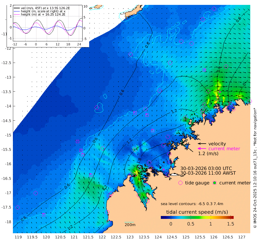 14cm/s -40T +10cm/s rms + 1cm/s 1T. NWSBRW 205m 20cm/s -24T +11cm/s rms + 6cm/s -110T. NWSROW 199m 23cm/s -14T +5cm/s rms + 2cm/s 65T. CAM050 58m 19cm/s -12T +12cm/s rms + 5cm/s 92T. CAM100 99m 5cm/s -14T +7cm/s rms + 1cm/s -85T. KIM400 396m 11cm/s -23T +9cm/s rms + 5cm/s -119T. KIM200 208m 22cm/s -17T +11cm/s rms + 5cm/s -147T. KIM100 99m 25cm/s -12T +8cm/s rms + 3cm/s -103T. KIM050 59m 23cm/s 67T +4cm/s rms + 2cm/s 23T. TIMORS88 91m 88cm Imperieuse Reef 51cm Mermaid Reef 154cm Broome 116cm Cape Baskerville 165cm Red Bluff 109cm Cape Boileau 51cm Scott Reef (WA) 76cm Ashmore Reef 199cm Karrakatta Bay 191cm Sunday Island 186cm Valentine Island 136cm Derby 177cm Port Usborne 223cm Bedford Islands 223cm Yampi Sound (Koolan Island) 250cm Macleay Island 160cm Adele Island 36cm Browse Island 273cm Shale Island 253cm Lizard Island 157cm Hall Point 190cm Degerando Island 145cm White Island 81cm Skua No. 4 Well 60cm Jabiru 134cm Maret Island 108cm Baudin Island 111cm Cape Voltaire (Krait Bay) 59cm Dillon Shoal 34cm Laminaria 125cm Port Warrender 77cm Troughton Island 116cm Cassini Island 72cm West Holothuria Reef Offshore 60cm Jar Island 90cm Lynher Bank 91cm Heywood Shoal 81cm Pee Shoal 44cm Van Cloon Shoal 17cm Carronade Island 11cm Guy Point 18cm Napier Broome Bay -43cm Lesueur Island