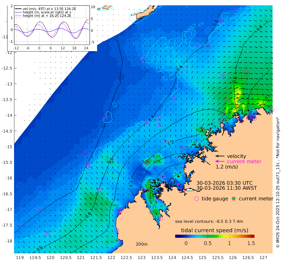 18cm/s -46T +10cm/s rms + 1cm/s 1T. NWSBRW 205m 25cm/s -31T +11cm/s rms + 6cm/s -110T. NWSROW 199m 36cm/s -23T +5cm/s rms + 2cm/s 65T. CAM050 58m 28cm/s -22T +12cm/s rms + 5cm/s 92T. CAM100 99m 6cm/s -32T +7cm/s rms + 1cm/s -85T. KIM400 396m 15cm/s -36T +9cm/s rms + 5cm/s -119T. KIM200 208m 29cm/s -29T +11cm/s rms + 5cm/s -147T. KIM100 99m 29cm/s -31T +8cm/s rms + 3cm/s -103T. KIM050 59m 25cm/s 65T +4cm/s rms + 2cm/s 23T. TIMORS88 91m 86cm Imperieuse Reef 30cm Mermaid Reef 113cm Broome 85cm Cape Baskerville 144cm Red Bluff 81cm Cape Boileau 31cm Scott Reef (WA) 59cm Ashmore Reef 187cm Karrakatta Bay 183cm Sunday Island 214cm Valentine Island 179cm Derby 197cm Port Usborne 198cm Bedford Islands 196cm Yampi Sound (Koolan Island) 205cm Macleay Island 127cm Adele Island 3cm Browse Island 249cm Shale Island 228cm Lizard Island 127cm Hall Point 160cm Degerando Island 113cm White Island 60cm Skua No. 4 Well 47cm Jabiru 100cm Maret Island 81cm Baudin Island 83cm Cape Voltaire (Krait Bay) 49cm Dillon Shoal 18cm Laminaria 100cm Port Warrender 61cm Troughton Island 89cm Cassini Island 52cm West Holothuria Reef Offshore 48cm Jar Island 66cm Lynher Bank 65cm Heywood Shoal 66cm Pee Shoal 39cm Van Cloon Shoal 9cm Carronade Island 2cm Guy Point 11cm Napier Broome Bay -34cm Lesueur Island