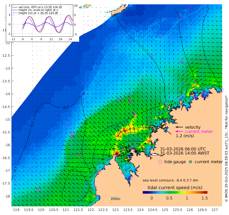 31cm/s -54T +10cm/s rms + 1cm/s 1T. NWSBRW 205m 35cm/s -45T +11cm/s rms + 6cm/s -110T. NWSROW 199m 81cm/s -36T +5cm/s rms + 2cm/s 65T. CAM050 58m 59cm/s -38T +12cm/s rms + 5cm/s 92T. CAM100 99m 13cm/s -64T +7cm/s rms + 1cm/s -85T. KIM400 396m 28cm/s -60T +9cm/s rms + 5cm/s -119T. KIM200 208m 51cm/s -52T +11cm/s rms + 5cm/s -147T. KIM100 99m 57cm/s -74T +8cm/s rms + 3cm/s -103T. KIM050 59m 23cm/s 52T +4cm/s rms + 2cm/s 23T. TIMORS88 91m 41cm Imperieuse Reef -77cm Mermaid Reef -124cm Broome -98cm Cape Baskerville -34cm Red Bluff -93cm Cape Boileau -74cm Scott Reef (WA) -44cm Ashmore Reef 52cm Karrakatta Bay 72cm Sunday Island 283cm Valentine Island 330cm Derby 235cm Port Usborne 7cm Bedford Islands -9cm Yampi Sound (Koolan Island) -68cm Macleay Island -69cm Adele Island -143cm Browse Island 43cm Shale Island 46cm Lizard Island -49cm Hall Point -48cm Degerando Island -84cm White Island -61cm Skua No. 4 Well -23cm Jabiru -95cm Maret Island -86cm Baudin Island -84cm Cape Voltaire (Krait Bay) -21cm Dillon Shoal -61cm Laminaria -69cm Port Warrender -41cm Troughton Island -78cm Cassini Island -67cm West Holothuria Reef Offshore -35cm Jar Island -68cm Lynher Bank -91cm Heywood Shoal -34cm Pee Shoal -11cm Van Cloon Shoal -41cm Carronade Island -54cm Guy Point -38cm Napier Broome Bay 6cm Lesueur Island