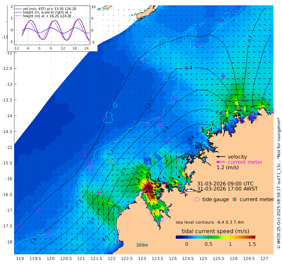 15cm/s 155T +10cm/s rms + 1cm/s 1T. NWSBRW 205m 15cm/s 171T +11cm/s rms + 6cm/s -110T. NWSROW 199m 10cm/s -135T +5cm/s rms + 2cm/s 65T. CAM050 58m 13cm/s -153T +12cm/s rms + 5cm/s 92T. CAM100 99m 5cm/s -156T +7cm/s rms + 1cm/s -85T. KIM400 396m 10cm/s -152T +9cm/s rms + 5cm/s -119T. KIM200 208m 20cm/s -159T +11cm/s rms + 5cm/s -147T. KIM100 99m 33cm/s -163T +8cm/s rms + 3cm/s -103T. KIM050 59m 15cm/s -123T +4cm/s rms + 2cm/s 23T. TIMORS88 91m -115cm Imperieuse Reef -104cm Mermaid Reef -281cm Broome -205cm Cape Baskerville -238cm Red Bluff -199cm Cape Boileau -102cm Scott Reef (WA) -123cm Ashmore Reef -270cm Karrakatta Bay -252cm Sunday Island -144cm Valentine Island -63cm Derby -168cm Port Usborne -317cm Bedford Islands -344cm Yampi Sound (Koolan Island) -392cm Macleay Island -253cm Adele Island -109cm Browse Island -405cm Shale Island -367cm Lizard Island -246cm Hall Point -304cm Degerando Island -264cm White Island -134cm Skua No. 4 Well -79cm Jabiru -233cm Maret Island -197cm Baudin Island -205cm Cape Voltaire (Krait Bay) -97cm Dillon Shoal -63cm Laminaria -224cm Port Warrender -132cm Troughton Island -196cm Cassini Island -131cm West Holothuria Reef Offshore -113cm Jar Island -161cm Lynher Bank -177cm Heywood Shoal -117cm Pee Shoal -63cm Van Cloon Shoal -53cm Carronade Island -56cm Guy Point -47cm Napier Broome Bay 54cm Lesueur Island