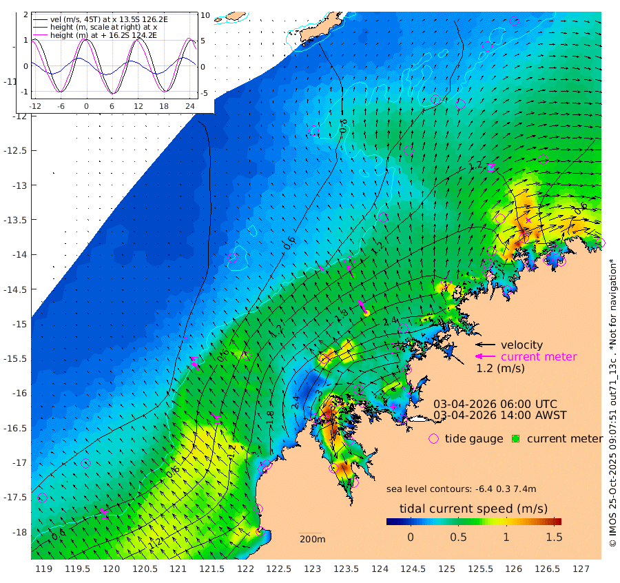 41cm/s -49T +10cm/s rms + 1cm/s 1T. NWSBRW 205m 50cm/s -35T +11cm/s rms + 6cm/s -110T. NWSROW 199m 92cm/s -31T +5cm/s rms + 2cm/s 65T. CAM050 58m 71cm/s -29T +12cm/s rms + 5cm/s 92T. CAM100 99m 15cm/s -43T +7cm/s rms + 1cm/s -85T. KIM400 396m 31cm/s -43T +9cm/s rms + 5cm/s -119T. KIM200 208m 61cm/s -36T +11cm/s rms + 5cm/s -147T. KIM100 99m 68cm/s -46T +8cm/s rms + 3cm/s -103T. KIM050 59m 35cm/s 41T +4cm/s rms + 2cm/s 23T. TIMORS88 91m 155cm Imperieuse Reef 23cm Mermaid Reef 129cm Broome 78cm Cape Baskerville 154cm Red Bluff 87cm Cape Boileau 25cm Scott Reef (WA) 69cm Ashmore Reef 299cm Karrakatta Bay 319cm Sunday Island 450cm Valentine Island 437cm Derby 429cm Port Usborne 290cm Bedford Islands 320cm Yampi Sound (Koolan Island) 302cm Macleay Island 161cm Adele Island -38cm Browse Island 432cm Shale Island 442cm Lizard Island 241cm Hall Point 232cm Degerando Island 176cm White Island 60cm Skua No. 4 Well 81cm Jabiru 115cm Maret Island 92cm Baudin Island 108cm Cape Voltaire (Krait Bay) 73cm Dillon Shoal 0cm Laminaria 151cm Port Warrender 91cm Troughton Island 92cm Cassini Island 61cm West Holothuria Reef Offshore 86cm Jar Island 92cm Lynher Bank 68cm Heywood Shoal 73cm Pee Shoal 60cm Van Cloon Shoal 31cm Carronade Island 23cm Guy Point 33cm Napier Broome Bay -7cm Lesueur Island