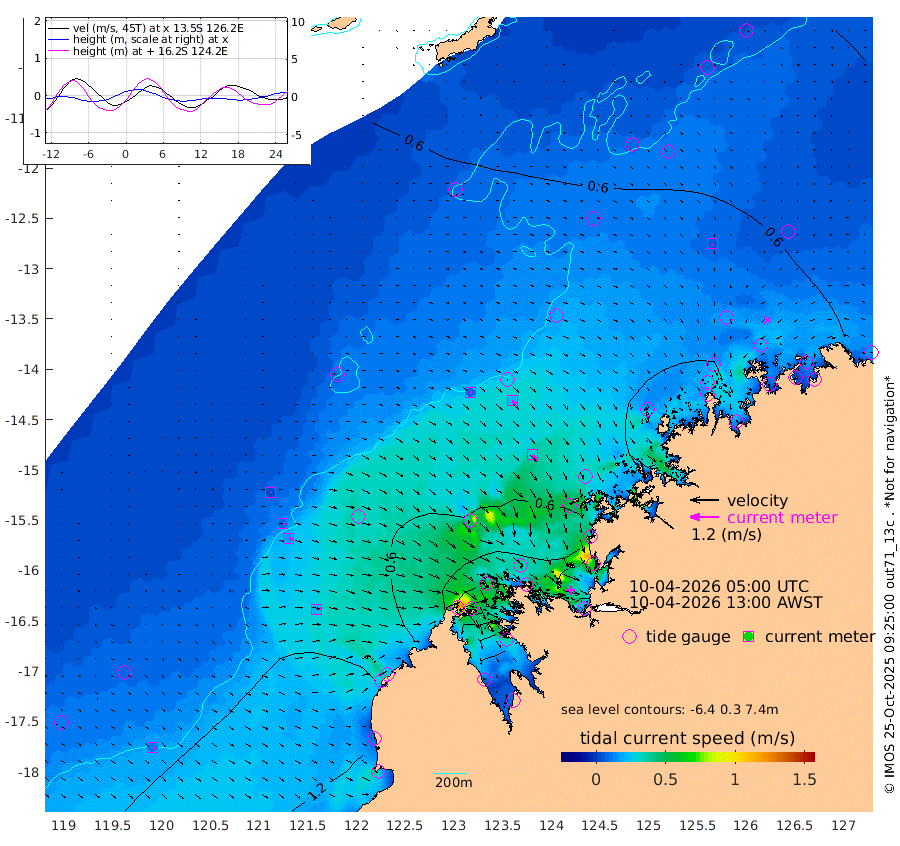 7cm/s 93T +10cm/s rms + 1cm/s 1T. NWSBRW 205m 10cm/s 121T +11cm/s rms + 6cm/s -110T. NWSROW 199m 30cm/s 135T +5cm/s rms + 2cm/s 65T. CAM050 58m 21cm/s 126T +12cm/s rms + 5cm/s 92T. CAM100 99m 4cm/s 97T +7cm/s rms + 1cm/s -85T. KIM400 396m 9cm/s 106T +9cm/s rms + 5cm/s -119T. KIM200 208m 17cm/s 109T +11cm/s rms + 5cm/s -147T. KIM100 99m 23cm/s 82T +8cm/s rms + 3cm/s -103T. KIM050 59m 5cm/s 174T +4cm/s rms + 2cm/s 23T. TIMORS88 91m 40cm Imperieuse Reef 73cm Mermaid Reef 139cm Broome 111cm Cape Baskerville 110cm Red Bluff 113cm Cape Boileau 65cm Scott Reef (WA) 72cm Ashmore Reef 57cm Karrakatta Bay 34cm Sunday Island -101cm Valentine Island -152cm Derby -84cm Port Usborne 88cm Bedford Islands 104cm Yampi Sound (Koolan Island) 66cm Macleay Island 81cm Adele Island 81cm Browse Island 94cm Shale Island 112cm Lizard Island 56cm Hall Point 118cm Degerando Island 116cm White Island 77cm Skua No. 4 Well 64cm Jabiru 120cm Maret Island 115cm Baudin Island 124cm Cape Voltaire (Krait Bay) 48cm Dillon Shoal 59cm Laminaria 129cm Port Warrender 100cm Troughton Island 119cm Cassini Island 91cm West Holothuria Reef Offshore 102cm Jar Island 87cm Lynher Bank 112cm Heywood Shoal 69cm Pee Shoal 76cm Van Cloon Shoal 96cm Carronade Island 96cm Guy Point 105cm Napier Broome Bay 90cm Lesueur Island