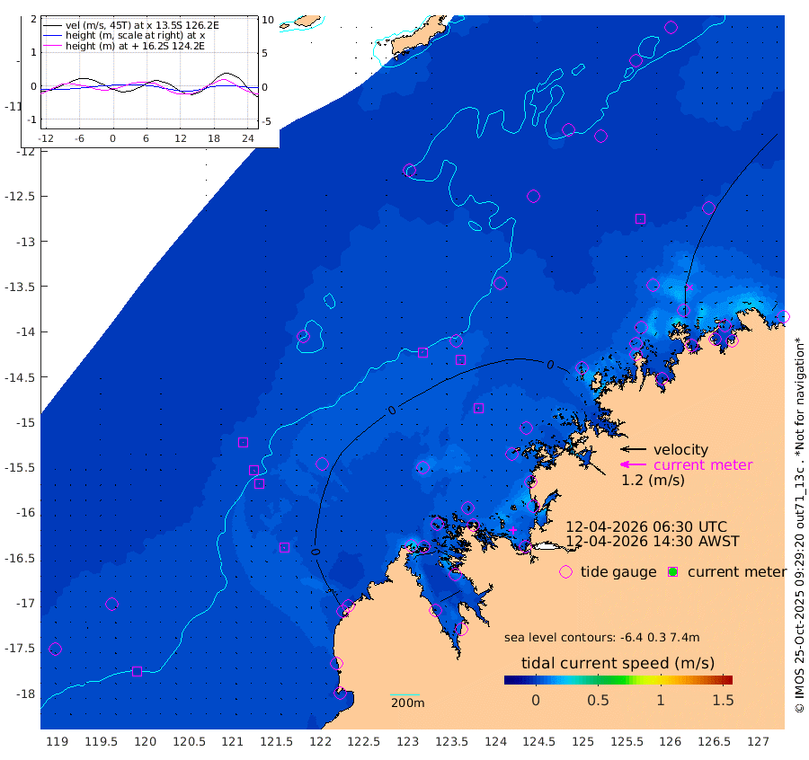 2cm/s -29T +10cm/s rms + 1cm/s 1T. NWSBRW 205m 0cm/s 96T +11cm/s rms + 6cm/s -110T. NWSROW 199m 2cm/s -37T +5cm/s rms + 2cm/s 65T. CAM050 58m 2cm/s -22T +12cm/s rms + 5cm/s 92T. CAM100 99m 1cm/s -99T +7cm/s rms + 1cm/s -85T. KIM400 396m 1cm/s -115T +9cm/s rms + 5cm/s -119T. KIM200 208m 1cm/s -123T +11cm/s rms + 5cm/s -147T. KIM100 99m 2cm/s -125T +8cm/s rms + 3cm/s -103T. KIM050 59m 1cm/s 164T +4cm/s rms + 2cm/s 23T. TIMORS88 91m 13cm Imperieuse Reef 8cm Mermaid Reef -3cm Broome -5cm Cape Baskerville -10cm Red Bluff 6cm Cape Boileau 6cm Scott Reef (WA) 6cm Ashmore Reef -19cm Karrakatta Bay -16cm Sunday Island -34cm Valentine Island -28cm Derby -27cm Port Usborne -14cm Bedford Islands -11cm Yampi Sound (Koolan Island) -66cm Macleay Island -26cm Adele Island -6cm Browse Island -17cm Shale Island 30cm Lizard Island -38cm Hall Point -3cm Degerando Island -3cm White Island 5cm Skua No. 4 Well 24cm Jabiru -1cm Maret Island -1cm Baudin Island 16cm Cape Voltaire (Krait Bay) 3cm Dillon Shoal 12cm Laminaria 16cm Port Warrender 22cm Troughton Island 6cm Cassini Island 9cm West Holothuria Reef Offshore 31cm Jar Island 11cm Lynher Bank 14cm Heywood Shoal 8cm Pee Shoal 31cm Van Cloon Shoal 43cm Carronade Island 42cm Guy Point 53cm Napier Broome Bay 74cm Lesueur Island