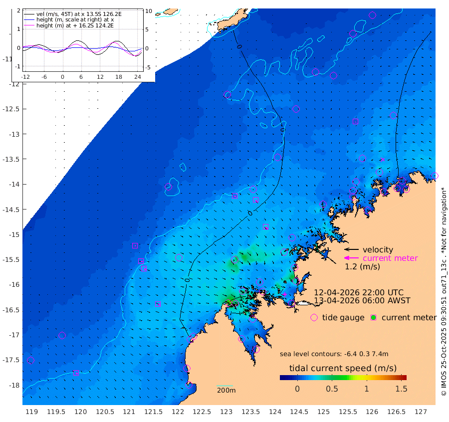 11cm/s 128T +10cm/s rms + 1cm/s 1T. NWSBRW 205m 14cm/s 141T +11cm/s rms + 6cm/s -110T. NWSROW 199m 27cm/s 143T +5cm/s rms + 2cm/s 65T. CAM050 58m 21cm/s 141T +12cm/s rms + 5cm/s 92T. CAM100 99m 6cm/s 120T +7cm/s rms + 1cm/s -85T. KIM400 396m 11cm/s 122T +9cm/s rms + 5cm/s -119T. KIM200 208m 19cm/s 132T +11cm/s rms + 5cm/s -147T. KIM100 99m 19cm/s 121T +8cm/s rms + 3cm/s -103T. KIM050 59m 5cm/s -161T +4cm/s rms + 2cm/s 23T. TIMORS88 91m -31cm Imperieuse Reef 10cm Mermaid Reef 4cm Broome -4cm Cape Baskerville -37cm Red Bluff -20cm Cape Boileau 7cm Scott Reef (WA) -1cm Ashmore Reef -40cm Karrakatta Bay -56cm Sunday Island -109cm Valentine Island -103cm Derby -73cm Port Usborne -41cm Bedford Islands -35cm Yampi Sound (Koolan Island) -6cm Macleay Island -7cm Adele Island 31cm Browse Island -40cm Shale Island -51cm Lizard Island 9cm Hall Point -29cm Degerando Island -12cm White Island 2cm Skua No. 4 Well -4cm Jabiru -3cm Maret Island -2cm Baudin Island -14cm Cape Voltaire (Krait Bay) -16cm Dillon Shoal 17cm Laminaria -44cm Port Warrender -23cm Troughton Island -10cm Cassini Island -11cm West Holothuria Reef Offshore -25cm Jar Island -3cm Lynher Bank -10cm Heywood Shoal -12cm Pee Shoal -31cm Van Cloon Shoal -29cm Carronade Island -29cm Guy Point -37cm Napier Broome Bay -41cm Lesueur Island