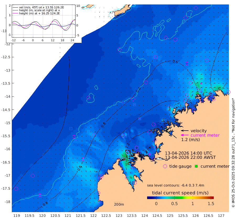 6cm/s -29T +10cm/s rms + 1cm/s 1T. NWSBRW 205m 10cm/s -21T +11cm/s rms + 6cm/s -110T. NWSROW 199m 7cm/s -20T +5cm/s rms + 2cm/s 65T. CAM050 58m 7cm/s -16T +12cm/s rms + 5cm/s 92T. CAM100 99m 3cm/s -13T +7cm/s rms + 1cm/s -85T. KIM400 396m 5cm/s -14T +9cm/s rms + 5cm/s -119T. KIM200 208m 11cm/s -9T +11cm/s rms + 5cm/s -147T. KIM100 99m 16cm/s 4T +8cm/s rms + 3cm/s -103T. KIM050 59m 6cm/s 13T +4cm/s rms + 2cm/s 23T. TIMORS88 91m 52cm Imperieuse Reef 36cm Mermaid Reef 111cm Broome 92cm Cape Baskerville 130cm Red Bluff 93cm Cape Boileau 36cm Scott Reef (WA) 50cm Ashmore Reef 136cm Karrakatta Bay 123cm Sunday Island 127cm Valentine Island 73cm Derby 97cm Port Usborne 135cm Bedford Islands 151cm Yampi Sound (Koolan Island) 191cm Macleay Island 118cm Adele Island 39cm Browse Island 178cm Shale Island 145cm Lizard Island 141cm Hall Point 128cm Degerando Island 113cm White Island 56cm Skua No. 4 Well 31cm Jabiru 96cm Maret Island 89cm Baudin Island 82cm Cape Voltaire (Krait Bay) 52cm Dillon Shoal 15cm Laminaria 106cm Port Warrender 61cm Troughton Island 86cm Cassini Island 63cm West Holothuria Reef Offshore 50cm Jar Island 54cm Lynher Bank 73cm Heywood Shoal 54cm Pee Shoal 34cm Van Cloon Shoal 22cm Carronade Island 25cm Guy Point 24cm Napier Broome Bay -29cm Lesueur Island