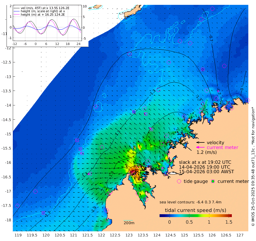 9cm/s -73T +10cm/s rms + 1cm/s 1T. NWSBRW 205m 10cm/s -78T +11cm/s rms + 6cm/s -110T. NWSROW 199m 40cm/s -47T +5cm/s rms + 2cm/s 65T. CAM050 58m 29cm/s -54T +12cm/s rms + 5cm/s 92T. CAM100 99m 7cm/s -93T +7cm/s rms + 1cm/s -85T. KIM400 396m 14cm/s -82T +9cm/s rms + 5cm/s -119T. KIM200 208m 22cm/s -82T +11cm/s rms + 5cm/s -147T. KIM100 99m 36cm/s -105T +8cm/s rms + 3cm/s -103T. KIM050 59m 4cm/s -85T +4cm/s rms + 2cm/s 23T. TIMORS88 91m -56cm Imperieuse Reef -104cm Mermaid Reef -227cm Broome -167cm Cape Baskerville -177cm Red Bluff -172cm Cape Boileau -102cm Scott Reef (WA) -109cm Ashmore Reef -140cm Karrakatta Bay -114cm Sunday Island 52cm Valentine Island 116cm Derby 17cm Port Usborne -168cm Bedford Islands -205cm Yampi Sound (Koolan Island) -266cm Macleay Island -192cm Adele Island -141cm Browse Island -214cm Shale Island -222cm Lizard Island -210cm Hall Point -202cm Degerando Island -196cm White Island -125cm Skua No. 4 Well -98cm Jabiru -190cm Maret Island -160cm Baudin Island -170cm Cape Voltaire (Krait Bay) -83cm Dillon Shoal -82cm Laminaria -167cm Port Warrender -113cm Troughton Island -171cm Cassini Island -127cm West Holothuria Reef Offshore -101cm Jar Island -129cm Lynher Bank -156cm Heywood Shoal -107cm Pee Shoal -71cm Van Cloon Shoal -71cm Carronade Island -70cm Guy Point -84cm Napier Broome Bay 14cm Lesueur Island