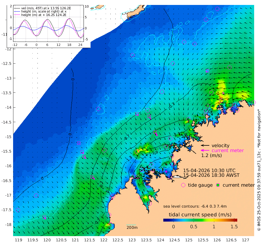 28cm/s 132T +10cm/s rms + 1cm/s 1T. NWSBRW 205m 33cm/s 145T +11cm/s rms + 6cm/s -110T. NWSROW 199m 64cm/s 147T +5cm/s rms + 2cm/s 65T. CAM050 58m 47cm/s 149T +12cm/s rms + 5cm/s 92T. CAM100 99m 10cm/s 133T +7cm/s rms + 1cm/s -85T. KIM400 396m 21cm/s 134T +9cm/s rms + 5cm/s -119T. KIM200 208m 41cm/s 141T +11cm/s rms + 5cm/s -147T. KIM100 99m 47cm/s 129T +8cm/s rms + 3cm/s -103T. KIM050 59m 23cm/s -125T +4cm/s rms + 2cm/s 23T. TIMORS88 91m -88cm Imperieuse Reef -1cm Mermaid Reef -62cm Broome -47cm Cape Baskerville -121cm Red Bluff -37cm Cape Boileau 3cm Scott Reef (WA) -36cm Ashmore Reef -196cm Karrakatta Bay -200cm Sunday Island -306cm Valentine Island -289cm Derby -267cm Port Usborne -177cm Bedford Islands -191cm Yampi Sound (Koolan Island) -177cm Macleay Island -94cm Adele Island 48cm Browse Island -262cm Shale Island -208cm Lizard Island -177cm Hall Point -130cm Degerando Island -97cm White Island -21cm Skua No. 4 Well -23cm Jabiru -60cm Maret Island -64cm Baudin Island -48cm Cape Voltaire (Krait Bay) -43cm Dillon Shoal 12cm Laminaria -85cm Port Warrender -47cm Troughton Island -50cm Cassini Island -34cm West Holothuria Reef Offshore -44cm Jar Island -35cm Lynher Bank -27cm Heywood Shoal -34cm Pee Shoal -28cm Van Cloon Shoal -4cm Carronade Island 0cm Guy Point 7cm Napier Broome Bay 16cm Lesueur Island