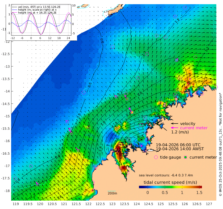 44cm/s -47T +10cm/s rms + 1cm/s 1T. NWSBRW 205m 53cm/s -34T +11cm/s rms + 6cm/s -110T. NWSROW 199m 94cm/s -32T +5cm/s rms + 2cm/s 65T. CAM050 58m 73cm/s -30T +12cm/s rms + 5cm/s 92T. CAM100 99m 15cm/s -41T +7cm/s rms + 1cm/s -85T. KIM400 396m 33cm/s -42T +9cm/s rms + 5cm/s -119T. KIM200 208m 63cm/s -35T +11cm/s rms + 5cm/s -147T. KIM100 99m 72cm/s -44T +8cm/s rms + 3cm/s -103T. KIM050 59m 37cm/s 36T +4cm/s rms + 2cm/s 23T. TIMORS88 91m 176cm Imperieuse Reef 36cm Mermaid Reef 168cm Broome 112cm Cape Baskerville 201cm Red Bluff 116cm Cape Boileau 34cm Scott Reef (WA) 94cm Ashmore Reef 359cm Karrakatta Bay 351cm Sunday Island 491cm Valentine Island 457cm Derby 457cm Port Usborne 321cm Bedford Islands 370cm Yampi Sound (Koolan Island) 364cm Macleay Island 198cm Adele Island -18cm Browse Island 502cm Shale Island 485cm Lizard Island 358cm Hall Point 270cm Degerando Island 215cm White Island 85cm Skua No. 4 Well 115cm Jabiru 153cm Maret Island 142cm Baudin Island 139cm Cape Voltaire (Krait Bay) 96cm Dillon Shoal 7cm Laminaria 183cm Port Warrender 129cm Troughton Island 133cm Cassini Island 93cm West Holothuria Reef Offshore 122cm Jar Island 103cm Lynher Bank 90cm Heywood Shoal 94cm Pee Shoal 82cm Van Cloon Shoal 51cm Carronade Island 41cm Guy Point 53cm Napier Broome Bay 10cm Lesueur Island