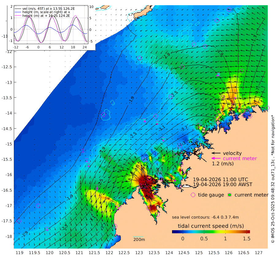 32cm/s 151T +10cm/s rms + 1cm/s 1T. NWSBRW 205m 28cm/s 162T +11cm/s rms + 6cm/s -110T. NWSROW 199m 30cm/s -179T +5cm/s rms + 2cm/s 65T. CAM050 58m 31cm/s -172T +12cm/s rms + 5cm/s 92T. CAM100 99m 9cm/s -168T +7cm/s rms + 1cm/s -85T. KIM400 396m 16cm/s -175T +9cm/s rms + 5cm/s -119T. KIM200 208m 33cm/s -177T +11cm/s rms + 5cm/s -147T. KIM100 99m 52cm/s -178T +8cm/s rms + 3cm/s -103T. KIM050 59m 33cm/s -119T +4cm/s rms + 2cm/s 23T. TIMORS88 91m -202cm Imperieuse Reef -163cm Mermaid Reef -397cm Broome -290cm Cape Baskerville -365cm Red Bluff -284cm Cape Boileau -152cm Scott Reef (WA) -201cm Ashmore Reef -430cm Karrakatta Bay -402cm Sunday Island -280cm Valentine Island -175cm Derby -303cm Port Usborne -457cm Bedford Islands -524cm Yampi Sound (Koolan Island) -537cm Macleay Island -355cm Adele Island -125cm Browse Island -635cm Shale Island -611cm Lizard Island -455cm Hall Point -441cm Degerando Island -395cm White Island -207cm Skua No. 4 Well -173cm Jabiru -336cm Maret Island -301cm Baudin Island -306cm Cape Voltaire (Krait Bay) -167cm Dillon Shoal -125cm Laminaria -335cm Port Warrender -221cm Troughton Island -290cm Cassini Island -211cm West Holothuria Reef Offshore -207cm Jar Island -243cm Lynher Bank -271cm Heywood Shoal -189cm Pee Shoal -134cm Van Cloon Shoal -119cm Carronade Island -121cm Guy Point -118cm Napier Broome Bay 4cm Lesueur Island