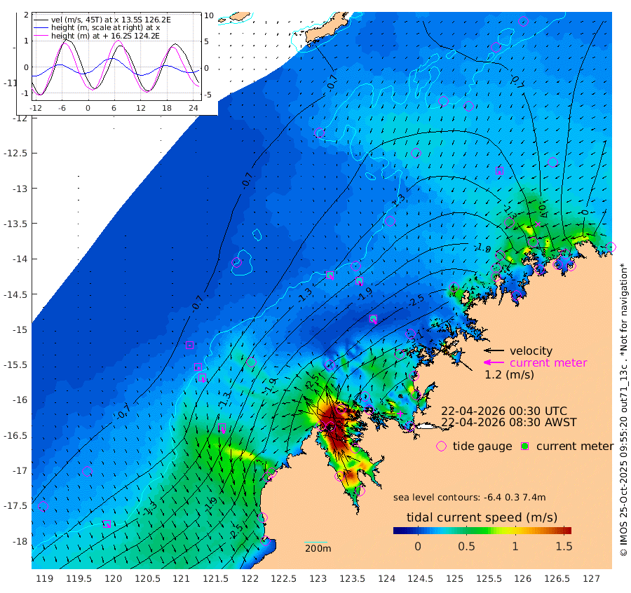 34cm/s 139T +10cm/s rms + 1cm/s 1T. NWSBRW 205m 27cm/s 153T +11cm/s rms + 6cm/s -110T. NWSROW 199m 34cm/s 150T +5cm/s rms + 2cm/s 65T. CAM050 58m 32cm/s 155T +12cm/s rms + 5cm/s 92T. CAM100 99m 7cm/s 166T +7cm/s rms + 1cm/s -85T. KIM400 396m 14cm/s 163T +9cm/s rms + 5cm/s -119T. KIM200 208m 31cm/s 164T +11cm/s rms + 5cm/s -147T. KIM100 99m 40cm/s 161T +8cm/s rms + 3cm/s -103T. KIM050 59m 18cm/s 179T +4cm/s rms + 2cm/s 23T. TIMORS88 91m -117cm Imperieuse Reef -62cm Mermaid Reef -237cm Broome -154cm Cape Baskerville -201cm Red Bluff -154cm Cape Boileau -55cm Scott Reef (WA) -79cm Ashmore Reef -286cm Karrakatta Bay -260cm Sunday Island -220cm Valentine Island -146cm Derby -237cm Port Usborne -297cm Bedford Islands -350cm Yampi Sound (Koolan Island) -359cm Macleay Island -202cm Adele Island -61cm Browse Island -448cm Shale Island -450cm Lizard Island -325cm Hall Point -279cm Degerando Island -247cm White Island -80cm Skua No. 4 Well -72cm Jabiru -181cm Maret Island -160cm Baudin Island -159cm Cape Voltaire (Krait Bay) -46cm Dillon Shoal -4cm Laminaria -183cm Port Warrender -87cm Troughton Island -134cm Cassini Island -80cm West Holothuria Reef Offshore -91cm Jar Island -126cm Lynher Bank -112cm Heywood Shoal -58cm Pee Shoal -26cm Van Cloon Shoal -17cm Carronade Island -11cm Guy Point -16cm Napier Broome Bay 74cm Lesueur Island
