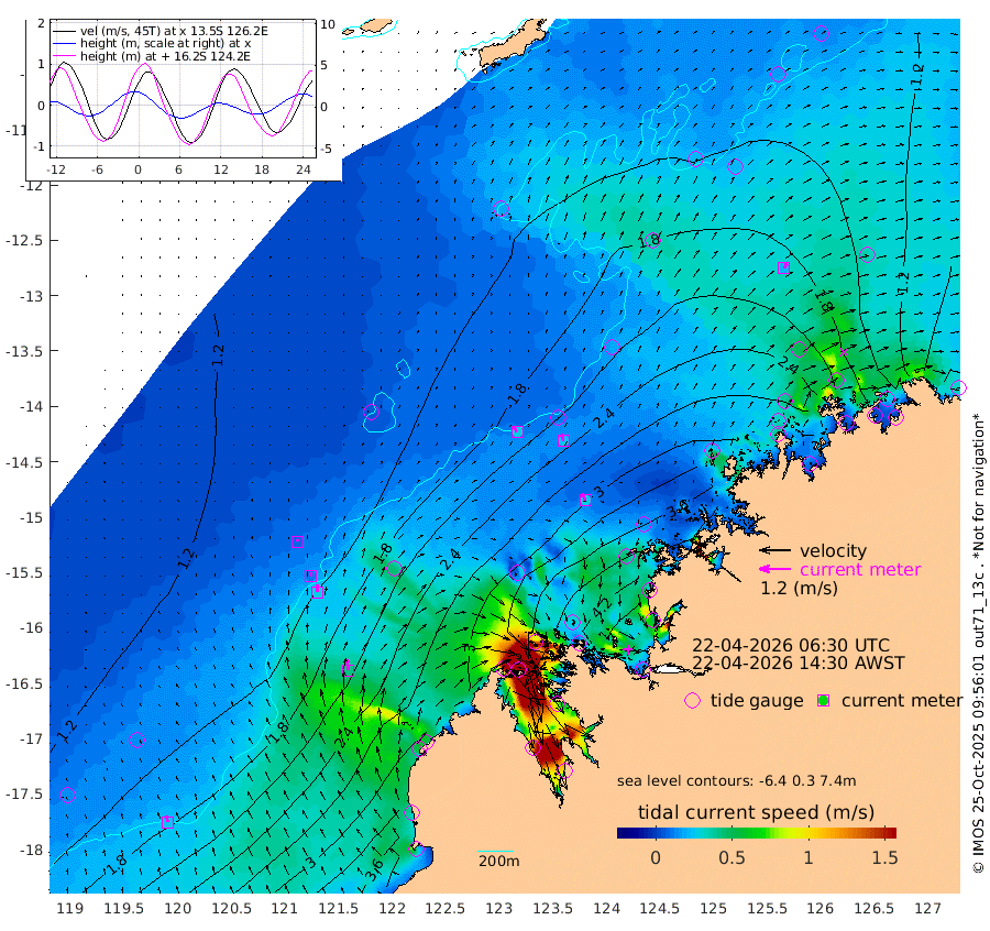 27cm/s -35T +10cm/s rms + 1cm/s 1T. NWSBRW 205m 26cm/s -19T +11cm/s rms + 6cm/s -110T. NWSROW 199m 27cm/s -24T +5cm/s rms + 2cm/s 65T. CAM050 58m 27cm/s -11T +12cm/s rms + 5cm/s 92T. CAM100 99m 7cm/s 1T +7cm/s rms + 1cm/s -85T. KIM400 396m 12cm/s -4T +9cm/s rms + 5cm/s -119T. KIM200 208m 27cm/s -6T +11cm/s rms + 5cm/s -147T. KIM100 99m 42cm/s -4T +8cm/s rms + 3cm/s -103T. KIM050 59m 22cm/s 31T +4cm/s rms + 2cm/s 23T. TIMORS88 91m 172cm Imperieuse Reef 127cm Mermaid Reef 310cm Broome 220cm Cape Baskerville 255cm Red Bluff 231cm Cape Boileau 121cm Scott Reef (WA) 156cm Ashmore Reef 337cm Karrakatta Bay 321cm Sunday Island 245cm Valentine Island 171cm Derby 266cm Port Usborne 351cm Bedford Islands 418cm Yampi Sound (Koolan Island) 421cm Macleay Island 271cm Adele Island 109cm Browse Island 509cm Shale Island 530cm Lizard Island 392cm Hall Point 353cm Degerando Island 323cm White Island 162cm Skua No. 4 Well 170cm Jabiru 264cm Maret Island 239cm Baudin Island 253cm Cape Voltaire (Krait Bay) 135cm Dillon Shoal 88cm Laminaria 287cm Port Warrender 200cm Troughton Island 230cm Cassini Island 176cm West Holothuria Reef Offshore 193cm Jar Island 198cm Lynher Bank 210cm Heywood Shoal 149cm Pee Shoal 130cm Van Cloon Shoal 132cm Carronade Island 134cm Guy Point 141cm Napier Broome Bay 61cm Lesueur Island