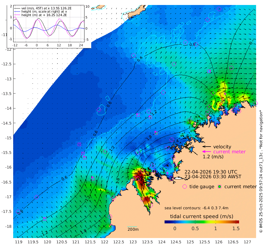 23cm/s -40T +10cm/s rms + 1cm/s 1T. NWSBRW 205m 27cm/s -28T +11cm/s rms + 6cm/s -110T. NWSROW 199m 38cm/s -28T +5cm/s rms + 2cm/s 65T. CAM050 58m 30cm/s -23T +12cm/s rms + 5cm/s 92T. CAM100 99m 6cm/s -6T +7cm/s rms + 1cm/s -85T. KIM400 396m 14cm/s -23T +9cm/s rms + 5cm/s -119T. KIM200 208m 27cm/s -25T +11cm/s rms + 5cm/s -147T. KIM100 99m 35cm/s -23T +8cm/s rms + 3cm/s -103T. KIM050 59m 24cm/s 52T +4cm/s rms + 2cm/s 23T. TIMORS88 91m 89cm Imperieuse Reef 43cm Mermaid Reef 157cm Broome 96cm Cape Baskerville 149cm Red Bluff 85cm Cape Boileau 36cm Scott Reef (WA) 56cm Ashmore Reef 235cm Karrakatta Bay 228cm Sunday Island 219cm Valentine Island 180cm Derby 238cm Port Usborne 240cm Bedford Islands 267cm Yampi Sound (Koolan Island) 275cm Macleay Island 149cm Adele Island 7cm Browse Island 358cm Shale Island 350cm Lizard Island 252cm Hall Point 196cm Degerando Island 167cm White Island 53cm Skua No. 4 Well 43cm Jabiru 114cm Maret Island 97cm Baudin Island 85cm Cape Voltaire (Krait Bay) 29cm Dillon Shoal 20cm Laminaria 90cm Port Warrender 25cm Troughton Island 68cm Cassini Island 33cm West Holothuria Reef Offshore 27cm Jar Island 90cm Lynher Bank 68cm Heywood Shoal 37cm Pee Shoal -9cm Van Cloon Shoal -37cm Carronade Island -40cm Guy Point -45cm Napier Broome Bay -118cm Lesueur Island