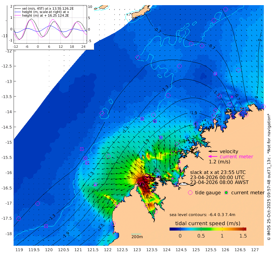 9cm/s 151T +10cm/s rms + 1cm/s 1T. NWSBRW 205m 6cm/s -161T +11cm/s rms + 6cm/s -110T. NWSROW 199m 13cm/s -40T +5cm/s rms + 2cm/s 65T. CAM050 58m 8cm/s -88T +12cm/s rms + 5cm/s 92T. CAM100 99m 4cm/s -127T +7cm/s rms + 1cm/s -85T. KIM400 396m 9cm/s -113T +9cm/s rms + 5cm/s -119T. KIM200 208m 15cm/s -120T +11cm/s rms + 5cm/s -147T. KIM100 99m 29cm/s -144T +8cm/s rms + 3cm/s -103T. KIM050 59m 15cm/s 111T +4cm/s rms + 2cm/s 23T. TIMORS88 91m -76cm Imperieuse Reef -90cm Mermaid Reef -259cm Broome -177cm Cape Baskerville -186cm Red Bluff -179cm Cape Boileau -79cm Scott Reef (WA) -85cm Ashmore Reef -190cm Karrakatta Bay -158cm Sunday Island 1cm Valentine Island 90cm Derby -36cm Port Usborne -228cm Bedford Islands -285cm Yampi Sound (Koolan Island) -285cm Macleay Island -184cm Adele Island -121cm Browse Island -331cm Shale Island -346cm Lizard Island -278cm Hall Point -255cm Degerando Island -250cm White Island -90cm Skua No. 4 Well -72cm Jabiru -198cm Maret Island -180cm Baudin Island -185cm Cape Voltaire (Krait Bay) -44cm Dillon Shoal -27cm Laminaria -207cm Port Warrender -106cm Troughton Island -156cm Cassini Island -106cm West Holothuria Reef Offshore -115cm Jar Island -140cm Lynher Bank -143cm Heywood Shoal -61cm Pee Shoal -43cm Van Cloon Shoal -65cm Carronade Island -65cm Guy Point -65cm Napier Broome Bay 15cm Lesueur Island
