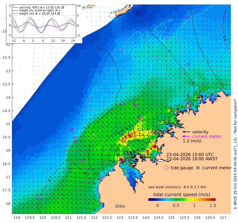 30cm/s -57T +10cm/s rms + 1cm/s 1T. NWSBRW 205m 31cm/s -46T +11cm/s rms + 6cm/s -110T. NWSROW 199m 75cm/s -35T +5cm/s rms + 2cm/s 65T. CAM050 58m 56cm/s -39T +12cm/s rms + 5cm/s 92T. CAM100 99m 12cm/s -61T +7cm/s rms + 1cm/s -85T. KIM400 396m 25cm/s -59T +9cm/s rms + 5cm/s -119T. KIM200 208m 46cm/s -50T +11cm/s rms + 5cm/s -147T. KIM100 99m 51cm/s -73T +8cm/s rms + 3cm/s -103T. KIM050 59m 24cm/s 21T +4cm/s rms + 2cm/s 23T. TIMORS88 91m 50cm Imperieuse Reef -62cm Mermaid Reef -116cm Broome -91cm Cape Baskerville -79cm Red Bluff -78cm Cape Boileau -47cm Scott Reef (WA) -28cm Ashmore Reef 65cm Karrakatta Bay 85cm Sunday Island 345cm Valentine Island 399cm Derby 299cm Port Usborne 6cm Bedford Islands -4cm Yampi Sound (Koolan Island) 20cm Macleay Island -35cm Adele Island -101cm Browse Island 55cm Shale Island 59cm Lizard Island -21cm Hall Point -45cm Degerando Island -75cm White Island -26cm Skua No. 4 Well 15cm Jabiru -79cm Maret Island -81cm Baudin Island -72cm Cape Voltaire (Krait Bay) 16cm Dillon Shoal -41cm Laminaria -63cm Port Warrender -12cm Troughton Island -63cm Cassini Island -46cm West Holothuria Reef Offshore -28cm Jar Island -57cm Lynher Bank -74cm Heywood Shoal -5cm Pee Shoal -1cm Van Cloon Shoal -32cm Carronade Island -33cm Guy Point -27cm Napier Broome Bay 4cm Lesueur Island