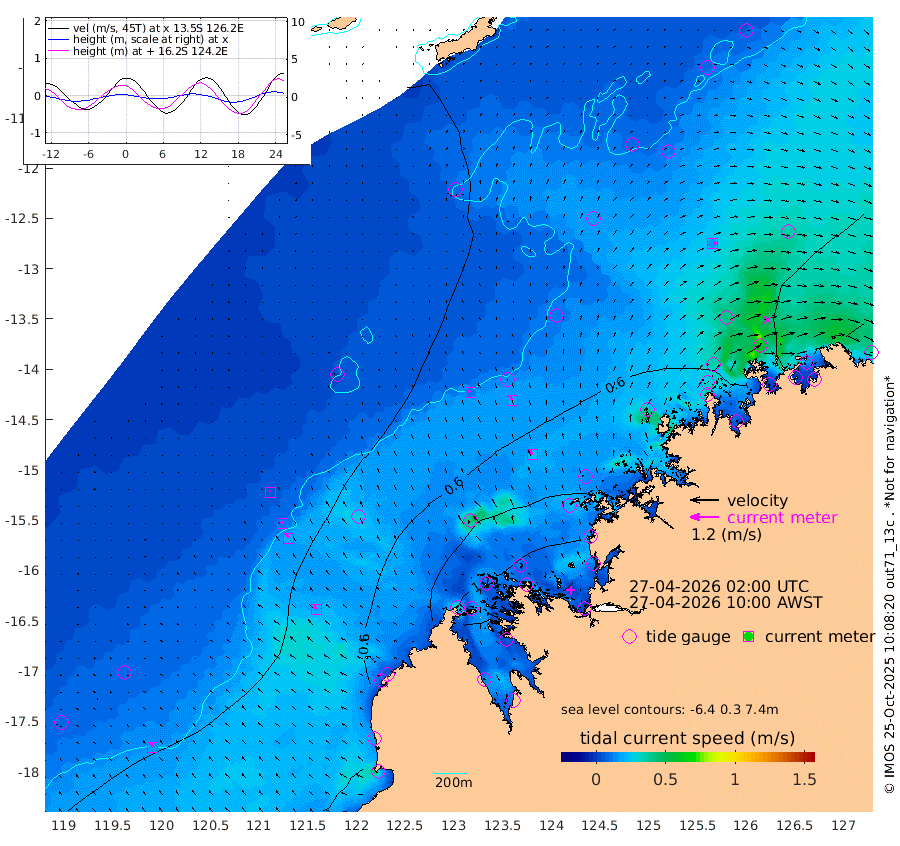 11cm/s -41T +10cm/s rms + 1cm/s 1T. NWSBRW 205m 17cm/s -27T +11cm/s rms + 6cm/s -110T. NWSROW 199m 24cm/s -21T +5cm/s rms + 2cm/s 65T. CAM050 58m 18cm/s -21T +12cm/s rms + 5cm/s 92T. CAM100 99m 4cm/s -31T +7cm/s rms + 1cm/s -85T. KIM400 396m 10cm/s -38T +9cm/s rms + 5cm/s -119T. KIM200 208m 20cm/s -29T +11cm/s rms + 5cm/s -147T. KIM100 99m 19cm/s -34T +8cm/s rms + 3cm/s -103T. KIM050 59m 16cm/s 72T +4cm/s rms + 2cm/s 23T. TIMORS88 91m 62cm Imperieuse Reef 21cm Mermaid Reef 67cm Broome 54cm Cape Baskerville 86cm Red Bluff 50cm Cape Boileau 26cm Scott Reef (WA) 47cm Ashmore Reef 123cm Karrakatta Bay 125cm Sunday Island 175cm Valentine Island 154cm Derby 154cm Port Usborne 135cm Bedford Islands 122cm Yampi Sound (Koolan Island) 147cm Macleay Island 92cm Adele Island 6cm Browse Island 152cm Shale Island 145cm Lizard Island 40cm Hall Point 100cm Degerando Island 65cm White Island 51cm Skua No. 4 Well 33cm Jabiru 70cm Maret Island 50cm Baudin Island 55cm Cape Voltaire (Krait Bay) 40cm Dillon Shoal 21cm Laminaria 64cm Port Warrender 52cm Troughton Island 65cm Cassini Island 40cm West Holothuria Reef Offshore 32cm Jar Island 45cm Lynher Bank 41cm Heywood Shoal 59cm Pee Shoal 35cm Van Cloon Shoal 10cm Carronade Island 4cm Guy Point 11cm Napier Broome Bay -15cm Lesueur Island