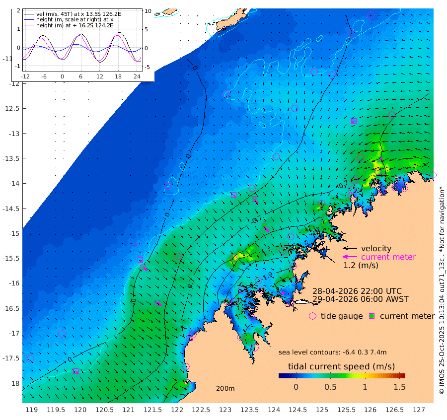 29cm/s 131T +10cm/s rms + 1cm/s 1T. NWSBRW 205m 34cm/s 144T +11cm/s rms + 6cm/s -110T. NWSROW 199m 62cm/s 145T +5cm/s rms + 2cm/s 65T. CAM050 58m 48cm/s 145T +12cm/s rms + 5cm/s 92T. CAM100 99m 10cm/s 130T +7cm/s rms + 1cm/s -85T. KIM400 396m 22cm/s 129T +9cm/s rms + 5cm/s -119T. KIM200 208m 43cm/s 138T +11cm/s rms + 5cm/s -147T. KIM100 99m 44cm/s 128T +8cm/s rms + 3cm/s -103T. KIM050 59m 19cm/s -137T +4cm/s rms + 2cm/s 23T. TIMORS88 91m -80cm Imperieuse Reef 14cm Mermaid Reef -42cm Broome -27cm Cape Baskerville -100cm Red Bluff -40cm Cape Boileau 10cm Scott Reef (WA) -16cm Ashmore Reef -173cm Karrakatta Bay -179cm Sunday Island -274cm Valentine Island -267cm Derby -244cm Port Usborne -157cm Bedford Islands -154cm Yampi Sound (Koolan Island) -141cm Macleay Island -68cm Adele Island 54cm Browse Island -217cm Shale Island -207cm Lizard Island -87cm Hall Point -108cm Degerando Island -59cm White Island -13cm Skua No. 4 Well -21cm Jabiru -35cm Maret Island -25cm Baudin Island -28cm Cape Voltaire (Krait Bay) -25cm Dillon Shoal 30cm Laminaria -51cm Port Warrender -17cm Troughton Island -27cm Cassini Island -4cm West Holothuria Reef Offshore -16cm Jar Island -20cm Lynher Bank -15cm Heywood Shoal -23cm Pee Shoal -15cm Van Cloon Shoal 18cm Carronade Island 24cm Guy Point 9cm Napier Broome Bay 45cm Lesueur Island