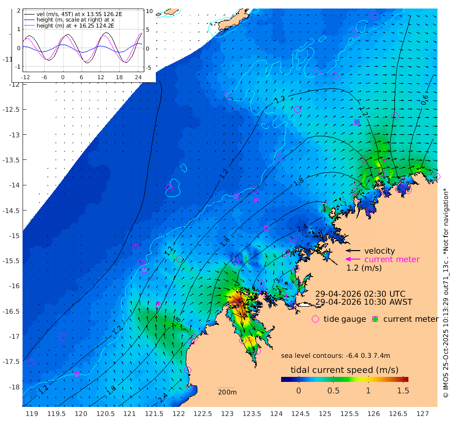 13cm/s -27T +10cm/s rms + 1cm/s 1T. NWSBRW 205m 19cm/s -12T +11cm/s rms + 6cm/s -110T. NWSROW 199m 14cm/s -3T +5cm/s rms + 2cm/s 65T. CAM050 58m 15cm/s 5T +12cm/s rms + 5cm/s 92T. CAM100 99m 5cm/s 10T +7cm/s rms + 1cm/s -85T. KIM400 396m 9cm/s 6T +9cm/s rms + 5cm/s -119T. KIM200 208m 21cm/s 3T +11cm/s rms + 5cm/s -147T. KIM100 99m 30cm/s 6T +8cm/s rms + 3cm/s -103T. KIM050 59m 15cm/s 58T +4cm/s rms + 2cm/s 23T. TIMORS88 91m 120cm Imperieuse Reef 96cm Mermaid Reef 245cm Broome 179cm Cape Baskerville 212cm Red Bluff 178cm Cape Boileau 96cm Scott Reef (WA) 122cm Ashmore Reef 251cm Karrakatta Bay 244cm Sunday Island 190cm Valentine Island 119cm Derby 194cm Port Usborne 292cm Bedford Islands 317cm Yampi Sound (Koolan Island) 356cm Macleay Island 233cm Adele Island 96cm Browse Island 369cm Shale Island 373cm Lizard Island 229cm Hall Point 276cm Degerando Island 240cm White Island 129cm Skua No. 4 Well 100cm Jabiru 215cm Maret Island 178cm Baudin Island 192cm Cape Voltaire (Krait Bay) 95cm Dillon Shoal 65cm Laminaria 218cm Port Warrender 144cm Troughton Island 186cm Cassini Island 132cm West Holothuria Reef Offshore 123cm Jar Island 153cm Lynher Bank 156cm Heywood Shoal 124cm Pee Shoal 86cm Van Cloon Shoal 75cm Carronade Island 72cm Guy Point 76cm Napier Broome Bay -2cm Lesueur Island