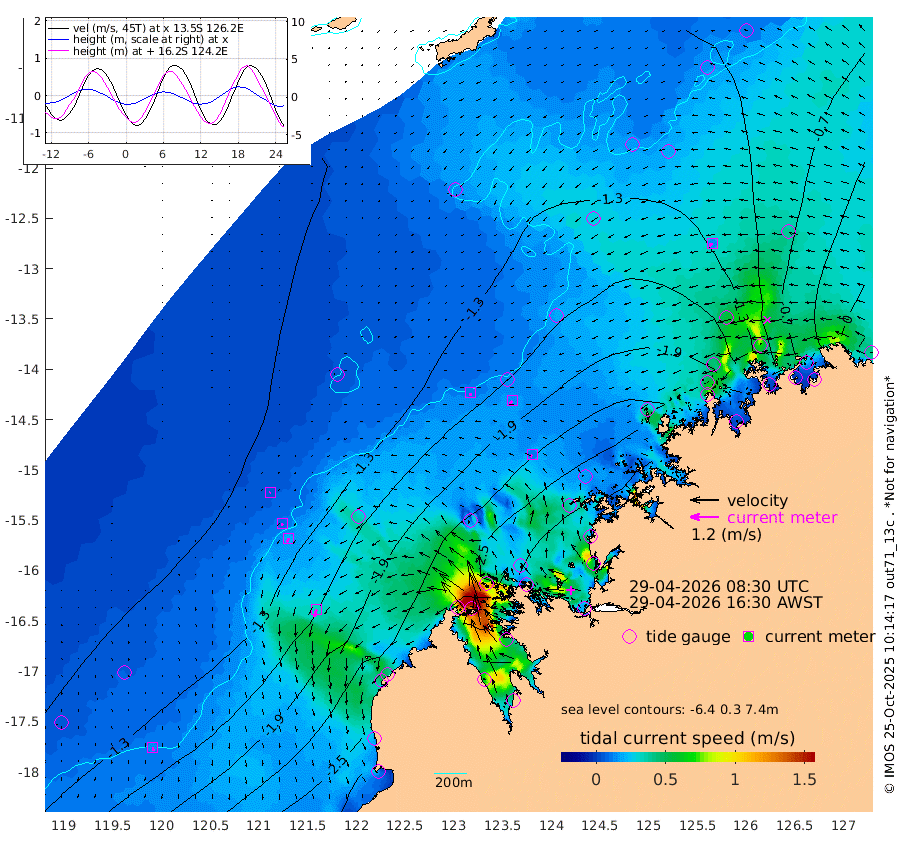 12cm/s 165T +10cm/s rms + 1cm/s 1T. NWSBRW 205m 14cm/s 174T +11cm/s rms + 6cm/s -110T. NWSROW 199m 12cm/s -133T +5cm/s rms + 2cm/s 65T. CAM050 58m 14cm/s -143T +12cm/s rms + 5cm/s 92T. CAM100 99m 6cm/s -149T +7cm/s rms + 1cm/s -85T. KIM400 396m 9cm/s -146T +9cm/s rms + 5cm/s -119T. KIM200 208m 19cm/s -155T +11cm/s rms + 5cm/s -147T. KIM100 99m 33cm/s -162T +8cm/s rms + 3cm/s -103T. KIM050 59m 15cm/s -112T +4cm/s rms + 2cm/s 23T. TIMORS88 91m -116cm Imperieuse Reef -112cm Mermaid Reef -269cm Broome -201cm Cape Baskerville -229cm Red Bluff -193cm Cape Boileau -108cm Scott Reef (WA) -130cm Ashmore Reef -261cm Karrakatta Bay -254cm Sunday Island -146cm Valentine Island -77cm Derby -170cm Port Usborne -307cm Bedford Islands -332cm Yampi Sound (Koolan Island) -375cm Macleay Island -248cm Adele Island -104cm Browse Island -384cm Shale Island -345cm Lizard Island -231cm Hall Point -290cm Degerando Island -258cm White Island -139cm Skua No. 4 Well -91cm Jabiru -228cm Maret Island -198cm Baudin Island -202cm Cape Voltaire (Krait Bay) -109cm Dillon Shoal -82cm Laminaria -222cm Port Warrender -139cm Troughton Island -194cm Cassini Island -139cm West Holothuria Reef Offshore -119cm Jar Island -164cm Lynher Bank -181cm Heywood Shoal -125cm Pee Shoal -75cm Van Cloon Shoal -66cm Carronade Island -71cm Guy Point -60cm Napier Broome Bay 28cm Lesueur Island