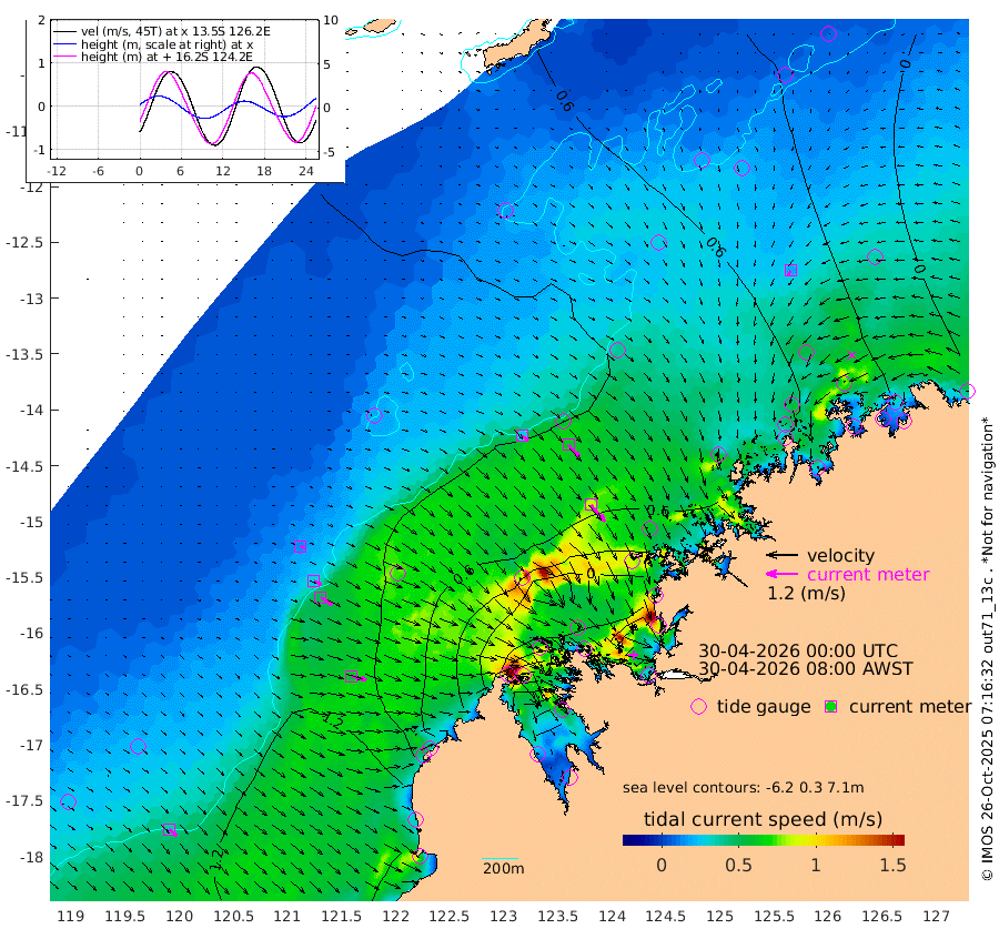 29cm/s 123T +10cm/s rms + 1cm/s 1T. NWSBRW 205m 35cm/s 134T +11cm/s rms + 6cm/s -110T. NWSROW 199m 83cm/s 140T +5cm/s rms + 2cm/s 65T. CAM050 58m 61cm/s 137T +12cm/s rms + 5cm/s 92T. CAM100 99m 14cm/s 112T +7cm/s rms + 1cm/s -85T. KIM400 396m 29cm/s 117T +9cm/s rms + 5cm/s -119T. KIM200 208m 51cm/s 123T +11cm/s rms + 5cm/s -147T. KIM100 99m 58cm/s 103T +8cm/s rms + 3cm/s -103T. KIM050 59m 19cm/s -143T +4cm/s rms + 2cm/s 23T. TIMORS88 91m -13cm Imperieuse Reef 108cm Mermaid Reef 174cm Broome 137cm Cape Baskerville 75cm Red Bluff 125cm Cape Boileau 102cm Scott Reef (WA) 85cm Ashmore Reef -19cm Karrakatta Bay -39cm Sunday Island -268cm Valentine Island -326cm Derby -219cm Port Usborne 36cm Bedford Islands 63cm Yampi Sound (Koolan Island) 114cm Macleay Island 115cm Adele Island 171cm Browse Island 12cm Shale Island 18cm Lizard Island 77cm Hall Point 99cm Degerando Island 137cm White Island 98cm Skua No. 4 Well 57cm Jabiru 148cm Maret Island 135cm Baudin Island 138cm Cape Voltaire (Krait Bay) 53cm Dillon Shoal 96cm Laminaria 129cm Port Warrender 101cm Troughton Island 136cm Cassini Island 118cm West Holothuria Reef Offshore 90cm Jar Island 108cm Lynher Bank 132cm Heywood Shoal 77cm Pee Shoal 58cm Van Cloon Shoal 95cm Carronade Island 103cm Guy Point 91cm Napier Broome Bay 55cm Lesueur Island