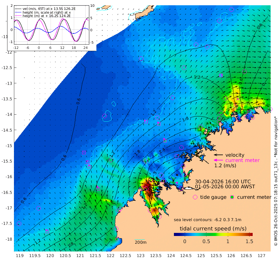 22cm/s -38T +10cm/s rms + 1cm/s 1T. NWSBRW 205m 30cm/s -28T +11cm/s rms + 6cm/s -110T. NWSROW 199m 40cm/s -24T +5cm/s rms + 2cm/s 65T. CAM050 58m 33cm/s -20T +12cm/s rms + 5cm/s 92T. CAM100 99m 8cm/s -18T +7cm/s rms + 1cm/s -85T. KIM400 396m 16cm/s -25T +9cm/s rms + 5cm/s -119T. KIM200 208m 31cm/s -22T +11cm/s rms + 5cm/s -147T. KIM100 99m 41cm/s -18T +8cm/s rms + 3cm/s -103T. KIM050 59m 22cm/s 55T +4cm/s rms + 2cm/s 23T. TIMORS88 91m 118cm Imperieuse Reef 64cm Mermaid Reef 211cm Broome 153cm Cape Baskerville 230cm Red Bluff 152cm Cape Boileau 59cm Scott Reef (WA) 85cm Ashmore Reef 289cm Karrakatta Bay 287cm Sunday Island 258cm Valentine Island 196cm Derby 254cm Port Usborne 308cm Bedford Islands 328cm Yampi Sound (Koolan Island) 340cm Macleay Island 204cm Adele Island 25cm Browse Island 410cm Shale Island 373cm Lizard Island 257cm Hall Point 262cm Degerando Island 217cm White Island 86cm Skua No. 4 Well 62cm Jabiru 166cm Maret Island 147cm Baudin Island 140cm Cape Voltaire (Krait Bay) 72cm Dillon Shoal 30cm Laminaria 169cm Port Warrender 74cm Troughton Island 126cm Cassini Island 79cm West Holothuria Reef Offshore 70cm Jar Island 120cm Lynher Bank 124cm Heywood Shoal 76cm Pee Shoal 34cm Van Cloon Shoal 4cm Carronade Island 7cm Guy Point 3cm Napier Broome Bay -90cm Lesueur Island