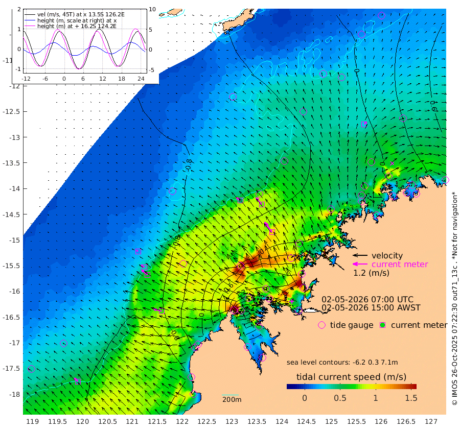 42cm/s -55T +10cm/s rms + 1cm/s 1T. NWSBRW 205m 42cm/s -46T +11cm/s rms + 6cm/s -110T. NWSROW 199m 103cm/s -37T +5cm/s rms + 2cm/s 65T. CAM050 58m 76cm/s -39T +12cm/s rms + 5cm/s 92T. CAM100 99m 16cm/s -65T +7cm/s rms + 1cm/s -85T. KIM400 396m 34cm/s -61T +9cm/s rms + 5cm/s -119T. KIM200 208m 63cm/s -52T +11cm/s rms + 5cm/s -147T. KIM100 99m 72cm/s -76T +8cm/s rms + 3cm/s -103T. KIM050 59m 27cm/s 29T +4cm/s rms + 2cm/s 23T. TIMORS88 91m 51cm Imperieuse Reef -100cm Mermaid Reef -165cm Broome -140cm Cape Baskerville -100cm Red Bluff -120cm Cape Boileau -87cm Scott Reef (WA) -63cm Ashmore Reef 53cm Karrakatta Bay 94cm Sunday Island 381cm Valentine Island 462cm Derby 338cm Port Usborne -1cm Bedford Islands -16cm Yampi Sound (Koolan Island) -53cm Macleay Island -85cm Adele Island -163cm Browse Island 51cm Shale Island 75cm Lizard Island -31cm Hall Point -65cm Degerando Island -107cm White Island -77cm Skua No. 4 Well -15cm Jabiru -126cm Maret Island -126cm Baudin Island -109cm Cape Voltaire (Krait Bay) -22cm Dillon Shoal -86cm Laminaria -88cm Port Warrender -51cm Troughton Island -112cm Cassini Island -89cm West Holothuria Reef Offshore -50cm Jar Island -82cm Lynher Bank -122cm Heywood Shoal -46cm Pee Shoal -20cm Van Cloon Shoal -50cm Carronade Island -59cm Guy Point -46cm Napier Broome Bay 7cm Lesueur Island