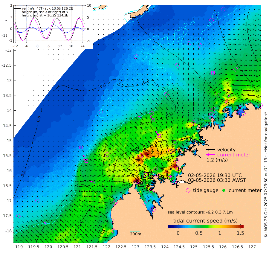 32cm/s -53T +10cm/s rms + 1cm/s 1T. NWSBRW 205m 33cm/s -49T +11cm/s rms + 6cm/s -110T. NWSROW 199m 87cm/s -33T +5cm/s rms + 2cm/s 65T. CAM050 58m 61cm/s -36T +12cm/s rms + 5cm/s 92T. CAM100 99m 12cm/s -66T +7cm/s rms + 1cm/s -85T. KIM400 396m 28cm/s -61T +9cm/s rms + 5cm/s -119T. KIM200 208m 49cm/s -55T +11cm/s rms + 5cm/s -147T. KIM100 99m 59cm/s -78T +8cm/s rms + 3cm/s -103T. KIM050 59m 31cm/s 57T +4cm/s rms + 2cm/s 23T. TIMORS88 91m 24cm Imperieuse Reef -91cm Mermaid Reef -190cm Broome -141cm Cape Baskerville -100cm Red Bluff -144cm Cape Boileau -85cm Scott Reef (WA) -67cm Ashmore Reef 25cm Karrakatta Bay 65cm Sunday Island 333cm Valentine Island 404cm Derby 280cm Port Usborne -24cm Bedford Islands -67cm Yampi Sound (Koolan Island) -104cm Macleay Island -107cm Adele Island -183cm Browse Island -11cm Shale Island -27cm Lizard Island -87cm Hall Point -111cm Degerando Island -144cm White Island -82cm Skua No. 4 Well -42cm Jabiru -151cm Maret Island -136cm Baudin Island -146cm Cape Voltaire (Krait Bay) -29cm Dillon Shoal -52cm Laminaria -139cm Port Warrender -89cm Troughton Island -142cm Cassini Island -109cm West Holothuria Reef Offshore -91cm Jar Island -93cm Lynher Bank -125cm Heywood Shoal -54cm Pee Shoal -48cm Van Cloon Shoal -92cm Carronade Island -91cm Guy Point -99cm Napier Broome Bay -37cm Lesueur Island