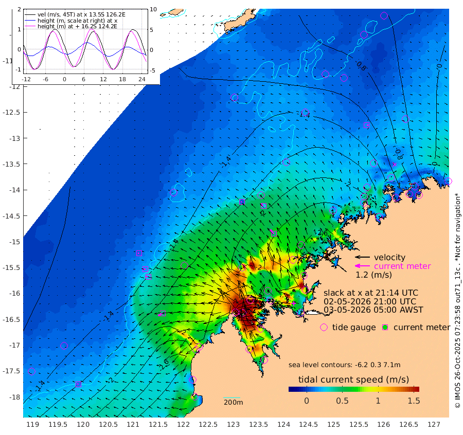 7cm/s -90T +10cm/s rms + 1cm/s 1T. NWSBRW 205m 11cm/s -84T +11cm/s rms + 6cm/s -110T. NWSROW 199m 44cm/s -40T +5cm/s rms + 2cm/s 65T. CAM050 58m 29cm/s -52T +12cm/s rms + 5cm/s 92T. CAM100 99m 8cm/s -99T +7cm/s rms + 1cm/s -85T. KIM400 396m 16cm/s -87T +9cm/s rms + 5cm/s -119T. KIM200 208m 26cm/s -88T +11cm/s rms + 5cm/s -147T. KIM100 99m 43cm/s -116T +8cm/s rms + 3cm/s -103T. KIM050 59m 14cm/s 75T +4cm/s rms + 2cm/s 23T. TIMORS88 91m -68cm Imperieuse Reef -125cm Mermaid Reef -329cm Broome -233cm Cape Baskerville -255cm Red Bluff -239cm Cape Boileau -114cm Scott Reef (WA) -119cm Ashmore Reef -192cm Karrakatta Bay -154cm Sunday Island 97cm Valentine Island 209cm Derby 53cm Port Usborne -244cm Bedford Islands -314cm Yampi Sound (Koolan Island) -351cm Macleay Island -247cm Adele Island -186cm Browse Island -331cm Shale Island -343cm Lizard Island -329cm Hall Point -299cm Degerando Island -303cm White Island -129cm Skua No. 4 Well -92cm Jabiru -259cm Maret Island -229cm Baudin Island -238cm Cape Voltaire (Krait Bay) -71cm Dillon Shoal -58cm Laminaria -260cm Port Warrender -138cm Troughton Island -218cm Cassini Island -157cm West Holothuria Reef Offshore -141cm Jar Island -174cm Lynher Bank -197cm Heywood Shoal -98cm Pee Shoal -69cm Van Cloon Shoal -93cm Carronade Island -91cm Guy Point -100cm Napier Broome Bay 25cm Lesueur Island