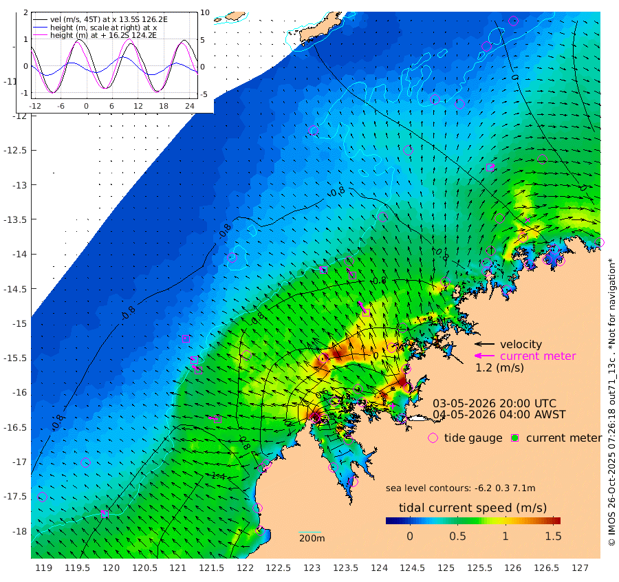 30cm/s -54T +10cm/s rms + 1cm/s 1T. NWSBRW 205m 31cm/s -49T +11cm/s rms + 6cm/s -110T. NWSROW 199m 83cm/s -33T +5cm/s rms + 2cm/s 65T. CAM050 58m 58cm/s -36T +12cm/s rms + 5cm/s 92T. CAM100 99m 11cm/s -66T +7cm/s rms + 1cm/s -85T. KIM400 396m 27cm/s -61T +9cm/s rms + 5cm/s -119T. KIM200 208m 47cm/s -55T +11cm/s rms + 5cm/s -147T. KIM100 99m 56cm/s -80T +8cm/s rms + 3cm/s -103T. KIM050 59m 31cm/s 57T +4cm/s rms + 2cm/s 23T. TIMORS88 91m 18cm Imperieuse Reef -89cm Mermaid Reef -193cm Broome -143cm Cape Baskerville -106cm Red Bluff -147cm Cape Boileau -81cm Scott Reef (WA) -68cm Ashmore Reef 13cm Karrakatta Bay 56cm Sunday Island 330cm Valentine Island 397cm Derby 272cm Port Usborne -32cm Bedford Islands -75cm Yampi Sound (Koolan Island) -104cm Macleay Island -107cm Adele Island -178cm Browse Island -24cm Shale Island -29cm Lizard Island -88cm Hall Point -118cm Degerando Island -146cm White Island -81cm Skua No. 4 Well -42cm Jabiru -153cm Maret Island -141cm Baudin Island -148cm Cape Voltaire (Krait Bay) -31cm Dillon Shoal -47cm Laminaria -141cm Port Warrender -91cm Troughton Island -145cm Cassini Island -108cm West Holothuria Reef Offshore -95cm Jar Island -92cm Lynher Bank -126cm Heywood Shoal -53cm Pee Shoal -50cm Van Cloon Shoal -93cm Carronade Island -91cm Guy Point -101cm Napier Broome Bay -40cm Lesueur Island