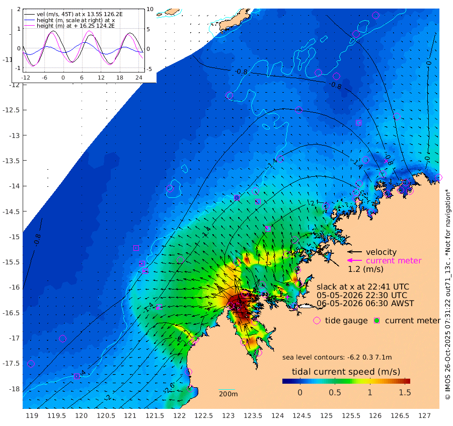 3cm/s -123T +10cm/s rms + 1cm/s 1T. NWSBRW 205m 6cm/s -108T +11cm/s rms + 6cm/s -110T. NWSROW 199m 27cm/s -36T +5cm/s rms + 2cm/s 65T. CAM050 58m 17cm/s -56T +12cm/s rms + 5cm/s 92T. CAM100 99m 5cm/s -112T +7cm/s rms + 1cm/s -85T. KIM400 396m 11cm/s -94T +9cm/s rms + 5cm/s -119T. KIM200 208m 17cm/s -96T +11cm/s rms + 5cm/s -147T. KIM100 99m 32cm/s -127T +8cm/s rms + 3cm/s -103T. KIM050 59m 13cm/s 89T +4cm/s rms + 2cm/s 23T. TIMORS88 91m -60cm Imperieuse Reef -91cm Mermaid Reef -265cm Broome -183cm Cape Baskerville -210cm Red Bluff -188cm Cape Boileau -78cm Scott Reef (WA) -90cm Ashmore Reef -176cm Karrakatta Bay -131cm Sunday Island 82cm Valentine Island 161cm Derby 32cm Port Usborne -197cm Bedford Islands -266cm Yampi Sound (Koolan Island) -274cm Macleay Island -188cm Adele Island -135cm Browse Island -298cm Shale Island -278cm Lizard Island -312cm Hall Point -246cm Degerando Island -246cm White Island -93cm Skua No. 4 Well -75cm Jabiru -203cm Maret Island -192cm Baudin Island -188cm Cape Voltaire (Krait Bay) -53cm Dillon Shoal -28cm Laminaria -202cm Port Warrender -106cm Troughton Island -172cm Cassini Island -118cm West Holothuria Reef Offshore -119cm Jar Island -129cm Lynher Bank -151cm Heywood Shoal -63cm Pee Shoal -49cm Van Cloon Shoal -70cm Carronade Island -66cm Guy Point -74cm Napier Broome Bay 19cm Lesueur Island
