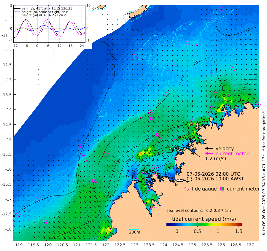 32cm/s 129T +10cm/s rms + 1cm/s 1T. NWSBRW 205m 30cm/s 140T +11cm/s rms + 6cm/s -110T. NWSROW 199m 62cm/s 143T +5cm/s rms + 2cm/s 65T. CAM050 58m 48cm/s 140T +12cm/s rms + 5cm/s 92T. CAM100 99m 8cm/s 128T +7cm/s rms + 1cm/s -85T. KIM400 396m 19cm/s 128T +9cm/s rms + 5cm/s -119T. KIM200 208m 37cm/s 134T +11cm/s rms + 5cm/s -147T. KIM100 99m 44cm/s 118T +8cm/s rms + 3cm/s -103T. KIM050 59m 21cm/s -158T +4cm/s rms + 2cm/s 23T. TIMORS88 91m -37cm Imperieuse Reef 43cm Mermaid Reef 19cm Broome 35cm Cape Baskerville -14cm Red Bluff 34cm Cape Boileau 43cm Scott Reef (WA) 29cm Ashmore Reef -115cm Karrakatta Bay -128cm Sunday Island -251cm Valentine Island -272cm Derby -241cm Port Usborne -75cm Bedford Islands -100cm Yampi Sound (Koolan Island) -107cm Macleay Island -19cm Adele Island 76cm Browse Island -176cm Shale Island -155cm Lizard Island -166cm Hall Point -38cm Degerando Island -22cm White Island 40cm Skua No. 4 Well 12cm Jabiru 31cm Maret Island 28cm Baudin Island 38cm Cape Voltaire (Krait Bay) 14cm Dillon Shoal 58cm Laminaria 23cm Port Warrender 49cm Troughton Island 49cm Cassini Island 45cm West Holothuria Reef Offshore 39cm Jar Island 22cm Lynher Bank 49cm Heywood Shoal 39cm Pee Shoal 48cm Van Cloon Shoal 73cm Carronade Island 77cm Guy Point 80cm Napier Broome Bay 104cm Lesueur Island
