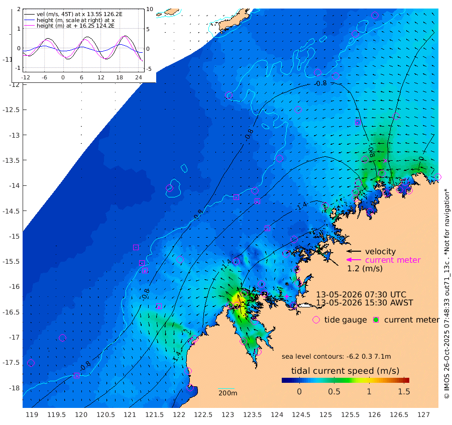 7cm/s 165T +10cm/s rms + 1cm/s 1T. NWSBRW 205m 10cm/s 163T +11cm/s rms + 6cm/s -110T. NWSROW 199m 10cm/s -162T +5cm/s rms + 2cm/s 65T. CAM050 58m 10cm/s -154T +12cm/s rms + 5cm/s 92T. CAM100 99m 4cm/s -160T +7cm/s rms + 1cm/s -85T. KIM400 396m 7cm/s -161T +9cm/s rms + 5cm/s -119T. KIM200 208m 14cm/s -164T +11cm/s rms + 5cm/s -147T. KIM100 99m 22cm/s -171T +8cm/s rms + 3cm/s -103T. KIM050 59m 11cm/s -109T +4cm/s rms + 2cm/s 23T. TIMORS88 91m -76cm Imperieuse Reef -66cm Mermaid Reef -162cm Broome -129cm Cape Baskerville -163cm Red Bluff -111cm Cape Boileau -61cm Scott Reef (WA) -87cm Ashmore Reef -188cm Karrakatta Bay -167cm Sunday Island -154cm Valentine Island -93cm Derby -138cm Port Usborne -195cm Bedford Islands -214cm Yampi Sound (Koolan Island) -260cm Macleay Island -166cm Adele Island -58cm Browse Island -256cm Shale Island -203cm Lizard Island -177cm Hall Point -176cm Degerando Island -158cm White Island -91cm Skua No. 4 Well -58cm Jabiru -144cm Maret Island -134cm Baudin Island -118cm Cape Voltaire (Krait Bay) -75cm Dillon Shoal -53cm Laminaria -132cm Port Warrender -93cm Troughton Island -127cm Cassini Island -91cm West Holothuria Reef Offshore -73cm Jar Island -90cm Lynher Bank -105cm Heywood Shoal -85cm Pee Shoal -46cm Van Cloon Shoal -30cm Carronade Island -32cm Guy Point -20cm Napier Broome Bay 31cm Lesueur Island