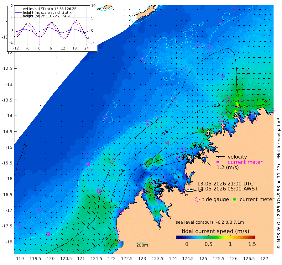 22cm/s 135T +10cm/s rms + 1cm/s 1T. NWSBRW 205m 26cm/s 145T +11cm/s rms + 6cm/s -110T. NWSROW 199m 44cm/s 147T +5cm/s rms + 2cm/s 65T. CAM050 58m 34cm/s 148T +12cm/s rms + 5cm/s 92T. CAM100 99m 7cm/s 137T +7cm/s rms + 1cm/s -85T. KIM400 396m 16cm/s 132T +9cm/s rms + 5cm/s -119T. KIM200 208m 33cm/s 142T +11cm/s rms + 5cm/s -147T. KIM100 99m 34cm/s 134T +8cm/s rms + 3cm/s -103T. KIM050 59m 15cm/s -132T +4cm/s rms + 2cm/s 23T. TIMORS88 91m -69cm Imperieuse Reef -2cm Mermaid Reef -73cm Broome -45cm Cape Baskerville -125cm Red Bluff -61cm Cape Boileau -3cm Scott Reef (WA) -28cm Ashmore Reef -167cm Karrakatta Bay -171cm Sunday Island -218cm Valentine Island -208cm Derby -200cm Port Usborne -145cm Bedford Islands -170cm Yampi Sound (Koolan Island) -180cm Macleay Island -97cm Adele Island 21cm Browse Island -223cm Shale Island -215cm Lizard Island -178cm Hall Point -123cm Degerando Island -93cm White Island -24cm Skua No. 4 Well -33cm Jabiru -60cm Maret Island -45cm Baudin Island -50cm Cape Voltaire (Krait Bay) -37cm Dillon Shoal 18cm Laminaria -74cm Port Warrender -23cm Troughton Island -47cm Cassini Island -27cm West Holothuria Reef Offshore -26cm Jar Island -32cm Lynher Bank -37cm Heywood Shoal -30cm Pee Shoal -19cm Van Cloon Shoal 7cm Carronade Island 13cm Guy Point -2cm Napier Broome Bay 62cm Lesueur Island