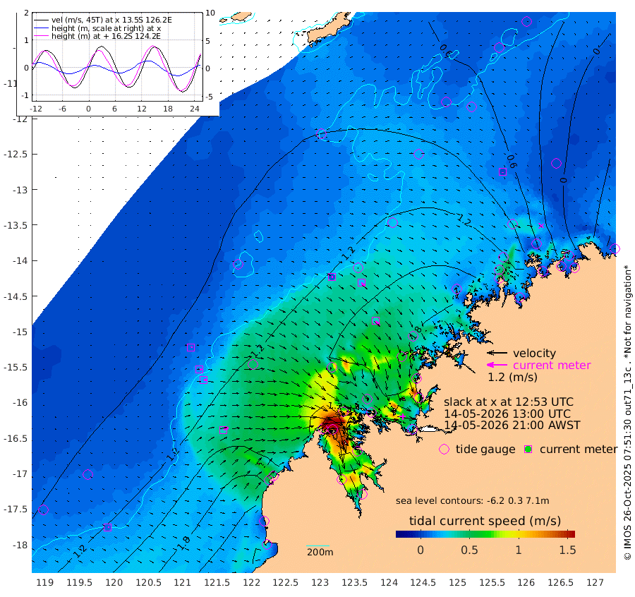 6cm/s 71T +10cm/s rms + 1cm/s 1T. NWSBRW 205m 9cm/s 92T +11cm/s rms + 6cm/s -110T. NWSROW 199m 34cm/s 136T +5cm/s rms + 2cm/s 65T. CAM050 58m 23cm/s 127T +12cm/s rms + 5cm/s 92T. CAM100 99m 8cm/s 83T +7cm/s rms + 1cm/s -85T. KIM400 396m 13cm/s 96T +9cm/s rms + 5cm/s -119T. KIM200 208m 20cm/s 95T +11cm/s rms + 5cm/s -147T. KIM100 99m 34cm/s 66T +8cm/s rms + 3cm/s -103T. KIM050 59m 3cm/s -177T +4cm/s rms + 2cm/s 23T. TIMORS88 91m 51cm Imperieuse Reef 97cm Mermaid Reef 241cm Broome 173cm Cape Baskerville 193cm Red Bluff 174cm Cape Boileau 93cm Scott Reef (WA) 92cm Ashmore Reef 160cm Karrakatta Bay 128cm Sunday Island -50cm Valentine Island -129cm Derby -12cm Port Usborne 195cm Bedford Islands 230cm Yampi Sound (Koolan Island) 287cm Macleay Island 193cm Adele Island 127cm Browse Island 251cm Shale Island 243cm Lizard Island 164cm Hall Point 214cm Degerando Island 203cm White Island 112cm Skua No. 4 Well 60cm Jabiru 186cm Maret Island 153cm Baudin Island 160cm Cape Voltaire (Krait Bay) 63cm Dillon Shoal 64cm Laminaria 152cm Port Warrender 76cm Troughton Island 153cm Cassini Island 99cm West Holothuria Reef Offshore 69cm Jar Island 124cm Lynher Bank 155cm Heywood Shoal 83cm Pee Shoal 28cm Van Cloon Shoal 23cm Carronade Island 26cm Guy Point 28cm Napier Broome Bay -93cm Lesueur Island