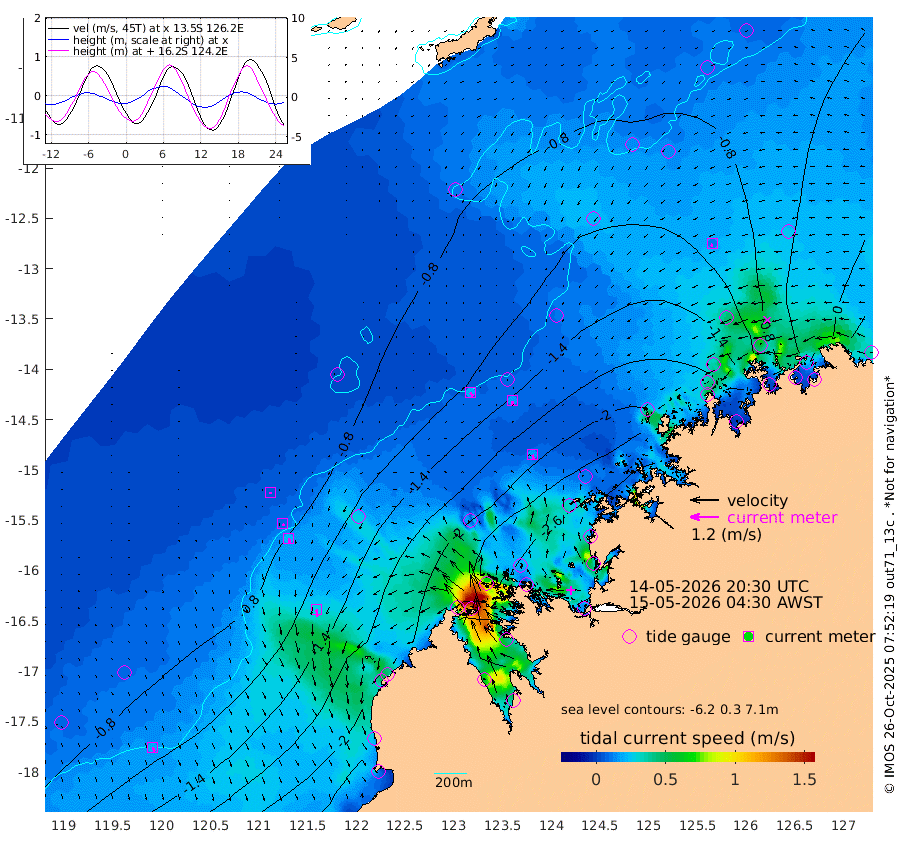 19cm/s 144T +10cm/s rms + 1cm/s 1T. NWSBRW 205m 19cm/s 157T +11cm/s rms + 6cm/s -110T. NWSROW 199m 18cm/s 160T +5cm/s rms + 2cm/s 65T. CAM050 58m 18cm/s 166T +12cm/s rms + 5cm/s 92T. CAM100 99m 5cm/s 177T +7cm/s rms + 1cm/s -85T. KIM400 396m 9cm/s 166T +9cm/s rms + 5cm/s -119T. KIM200 208m 23cm/s 167T +11cm/s rms + 5cm/s -147T. KIM100 99m 29cm/s 173T +8cm/s rms + 3cm/s -103T. KIM050 59m 10cm/s -142T +4cm/s rms + 2cm/s 23T. TIMORS88 91m -95cm Imperieuse Reef -61cm Mermaid Reef -213cm Broome -146cm Cape Baskerville -213cm Red Bluff -156cm Cape Boileau -59cm Scott Reef (WA) -84cm Ashmore Reef -244cm Karrakatta Bay -224cm Sunday Island -157cm Valentine Island -102cm Derby -170cm Port Usborne -247cm Bedford Islands -290cm Yampi Sound (Koolan Island) -328cm Macleay Island -200cm Adele Island -68cm Browse Island -352cm Shale Island -339cm Lizard Island -270cm Hall Point -241cm Degerando Island -210cm White Island -89cm Skua No. 4 Well -73cm Jabiru -171cm Maret Island -145cm Baudin Island -147cm Cape Voltaire (Krait Bay) -66cm Dillon Shoal -19cm Laminaria -164cm Port Warrender -83cm Troughton Island -142cm Cassini Island -91cm West Holothuria Reef Offshore -81cm Jar Island -108cm Lynher Bank -118cm Heywood Shoal -77cm Pee Shoal -44cm Van Cloon Shoal -24cm Carronade Island -17cm Guy Point -33cm Napier Broome Bay 74cm Lesueur Island