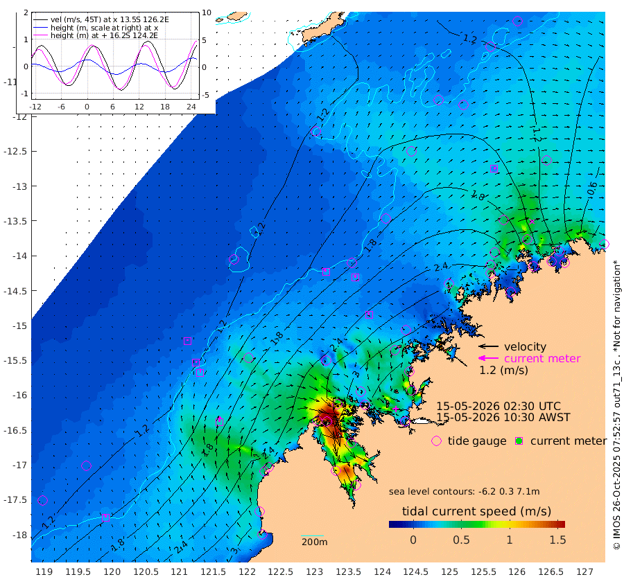 17cm/s -27T +10cm/s rms + 1cm/s 1T. NWSBRW 205m 20cm/s -12T +11cm/s rms + 6cm/s -110T. NWSROW 199m 15cm/s -14T +5cm/s rms + 2cm/s 65T. CAM050 58m 16cm/s 1T +12cm/s rms + 5cm/s 92T. CAM100 99m 6cm/s 10T +7cm/s rms + 1cm/s -85T. KIM400 396m 10cm/s 4T +9cm/s rms + 5cm/s -119T. KIM200 208m 22cm/s 1T +11cm/s rms + 5cm/s -147T. KIM100 99m 34cm/s 3T +8cm/s rms + 3cm/s -103T. KIM050 59m 13cm/s 46T +4cm/s rms + 2cm/s 23T. TIMORS88 91m 136cm Imperieuse Reef 108cm Mermaid Reef 276cm Broome 207cm Cape Baskerville 251cm Red Bluff 202cm Cape Boileau 103cm Scott Reef (WA) 145cm Ashmore Reef 297cm Karrakatta Bay 268cm Sunday Island 203cm Valentine Island 123cm Derby 205cm Port Usborne 310cm Bedford Islands 356cm Yampi Sound (Koolan Island) 398cm Macleay Island 260cm Adele Island 113cm Browse Island 422cm Shale Island 396cm Lizard Island 325cm Hall Point 305cm Degerando Island 275cm White Island 148cm Skua No. 4 Well 127cm Jabiru 246cm Maret Island 224cm Baudin Island 219cm Cape Voltaire (Krait Bay) 117cm Dillon Shoal 73cm Laminaria 245cm Port Warrender 178cm Troughton Island 222cm Cassini Island 163cm West Holothuria Reef Offshore 159cm Jar Island 163cm Lynher Bank 175cm Heywood Shoal 140cm Pee Shoal 109cm Van Cloon Shoal 100cm Carronade Island 94cm Guy Point 101cm Napier Broome Bay 25cm Lesueur Island